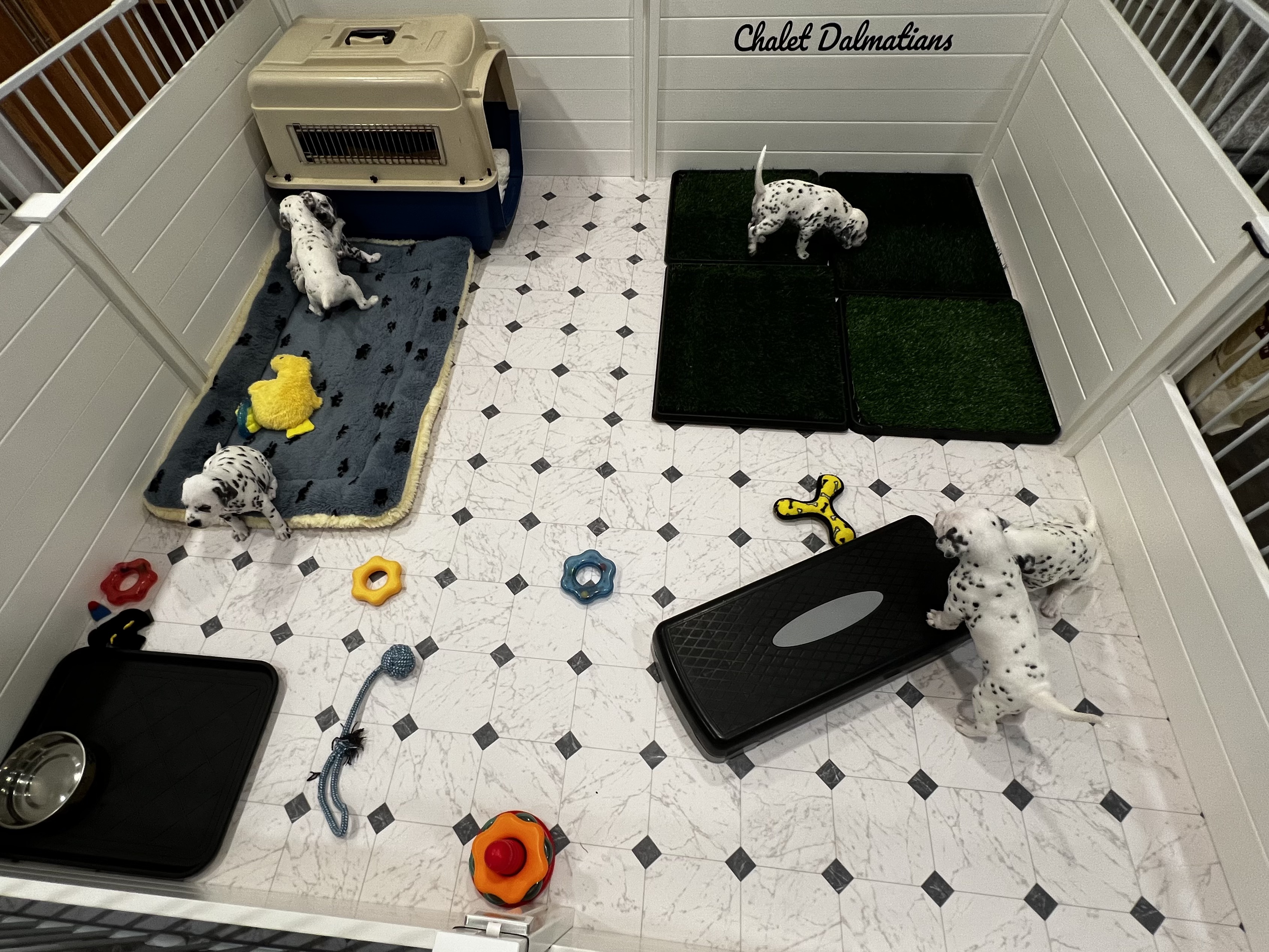 We have not decided if we will keep the potty area this big or not, but for now they are liking the size. It also seems to help encourage them to potty there. Although they still have accidents not in the potty, they are good for their age at using the patches!