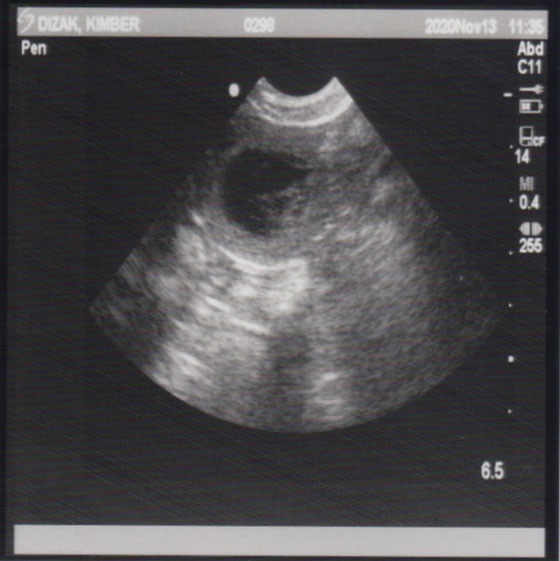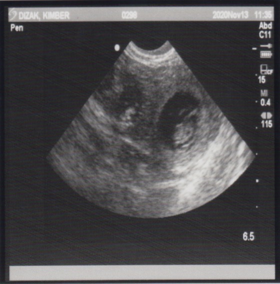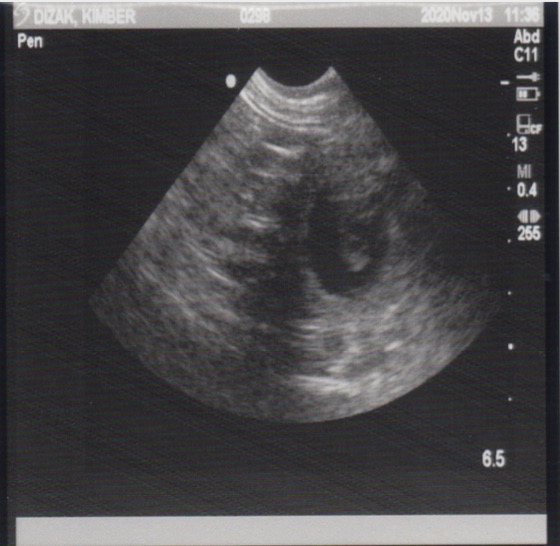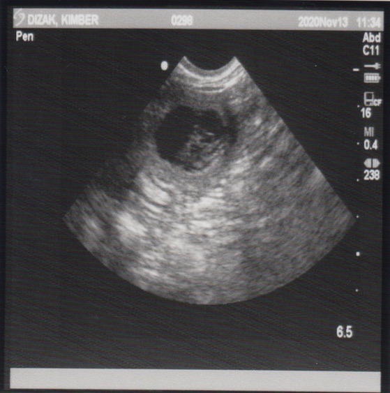 Since this was an artificial insemination and the success rate a bit lower than natural breedings, we wanted to have an ultrasound done to see if there are any little beings growing inside of Miss Kimber. Well, our repro vet confirmed this morning that Kimber is indeed pregnant!