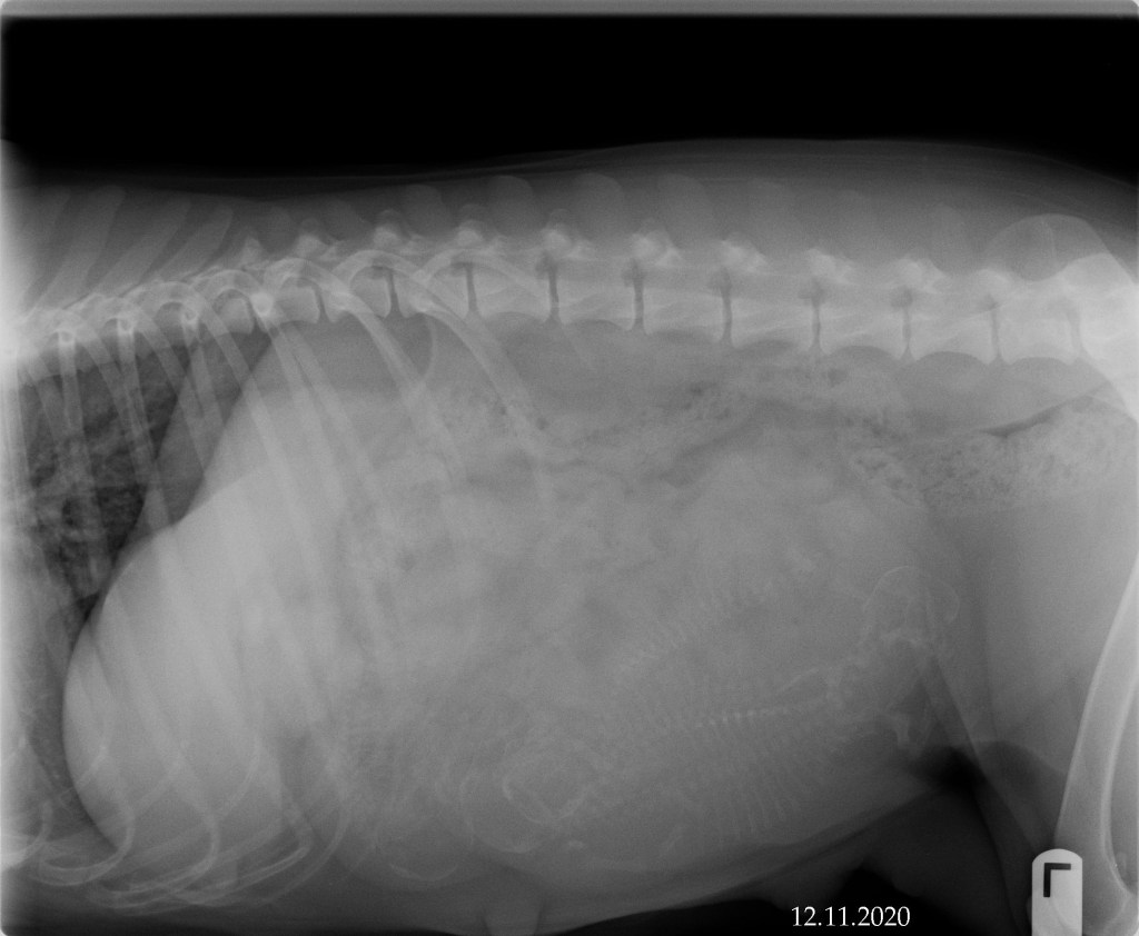 Today is always one of my favorite days of pregnancy. Kimber’s abdomen was x-rayed so that we could get a general count of how many puppies we should expect. Dr. Harr is usually right on when she counts the little skeletons. She says that we should anticipate 4 puppies! Although it is a smaller litter, we are very excited to welcome them into the world sometime next week!
