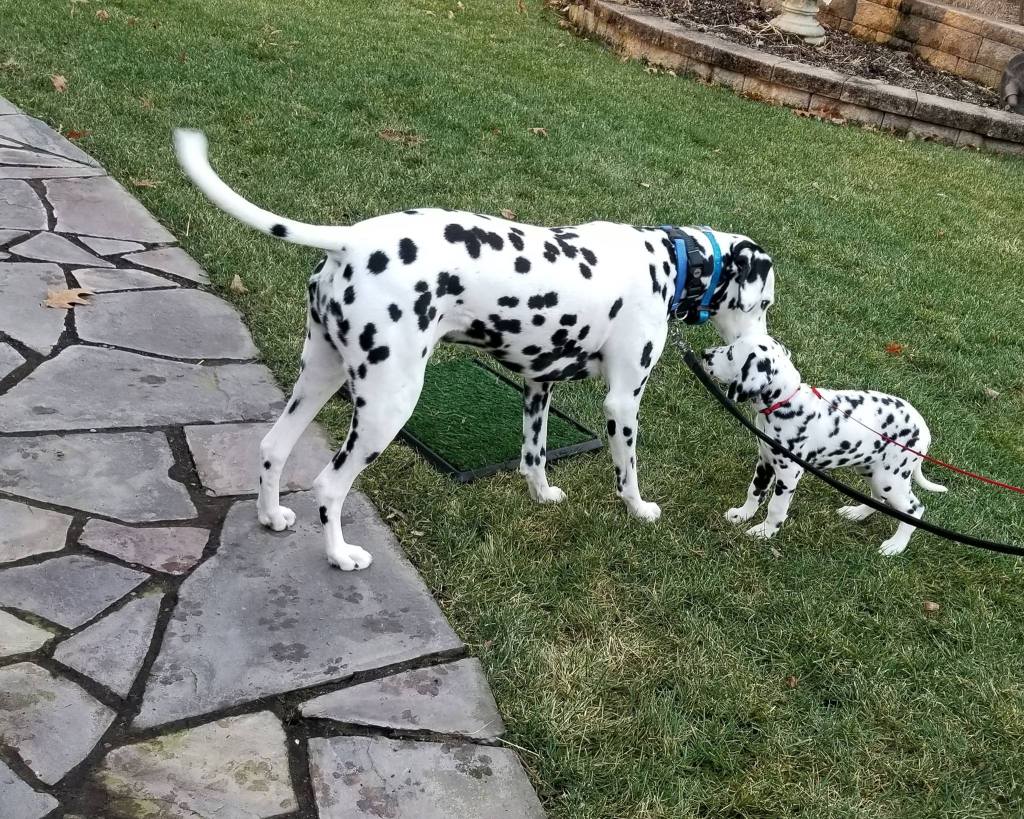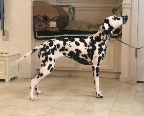 Tassie lives with Jean and Lou who are only a couple miles from our us. She will hopefully be shown in confromation by Paris along with some other events that Jean might want to try. She is the littermate to our boy Tripp, but she lives with another Dal named Beeman, who is her very distant relative. She is from from a low uric acid (LUA) breeding, but she does not carry the LUA gene. Her sire is HUA and her dam is LUA, (N/hu). We own both Brady and Kimber.