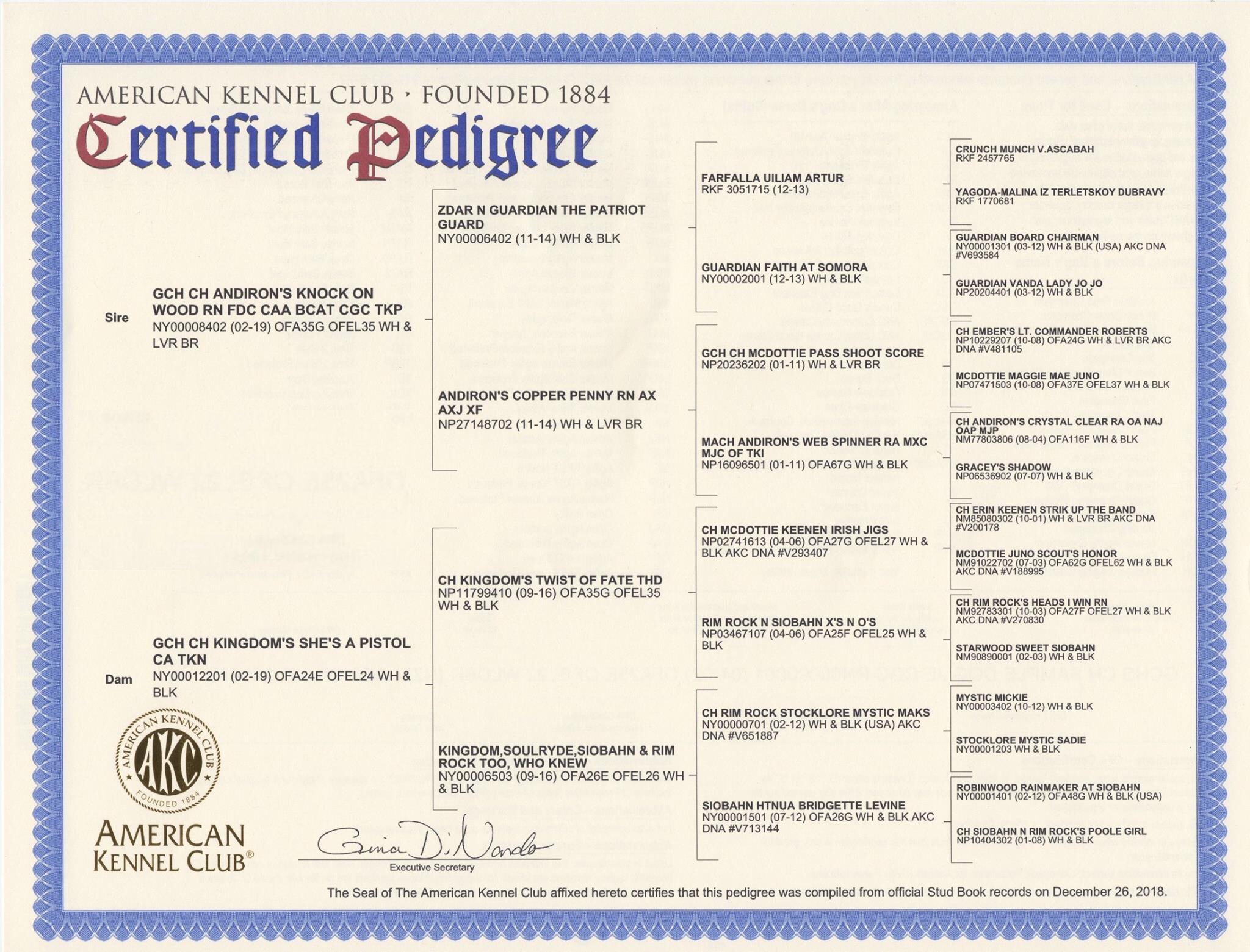 GCH ANDIRON’S KNCOK ON WOOD RN FDC CAA BCAT CGC TKE VHMA