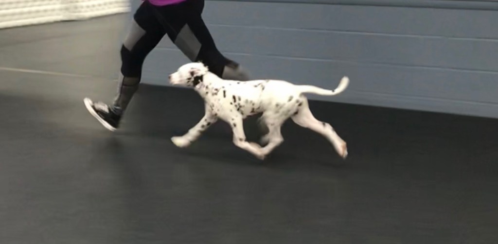 Tripp showing off his classic Dalmatian gate at 2.5 years old!