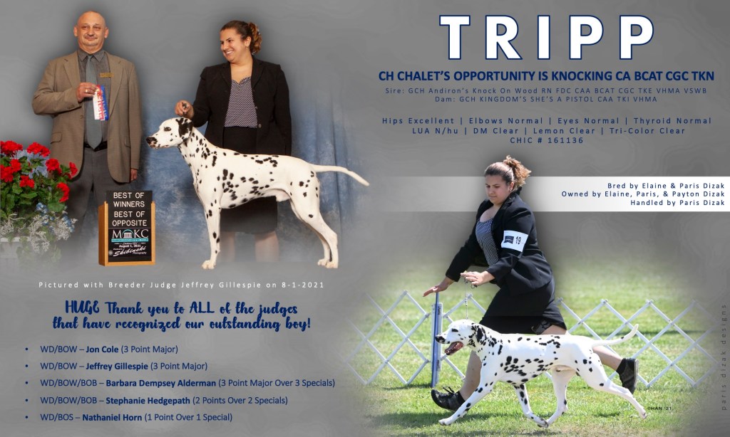 This is Tripp’s advertisement in EDalmatians after he finished his championship.