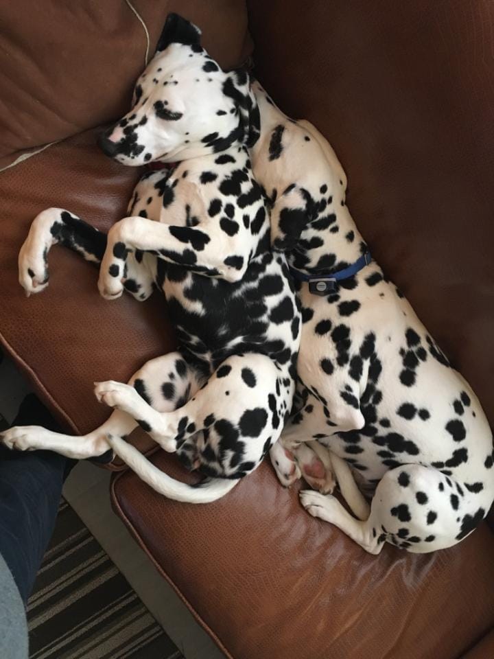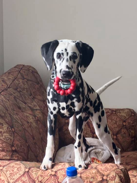 Butterball left today to live with his new family. They have an older Dal to show him what life is all about. Sue and Norm are going to see if Lucas fits as his new name. His registered name will be Chalet’s Don’t Knock It.