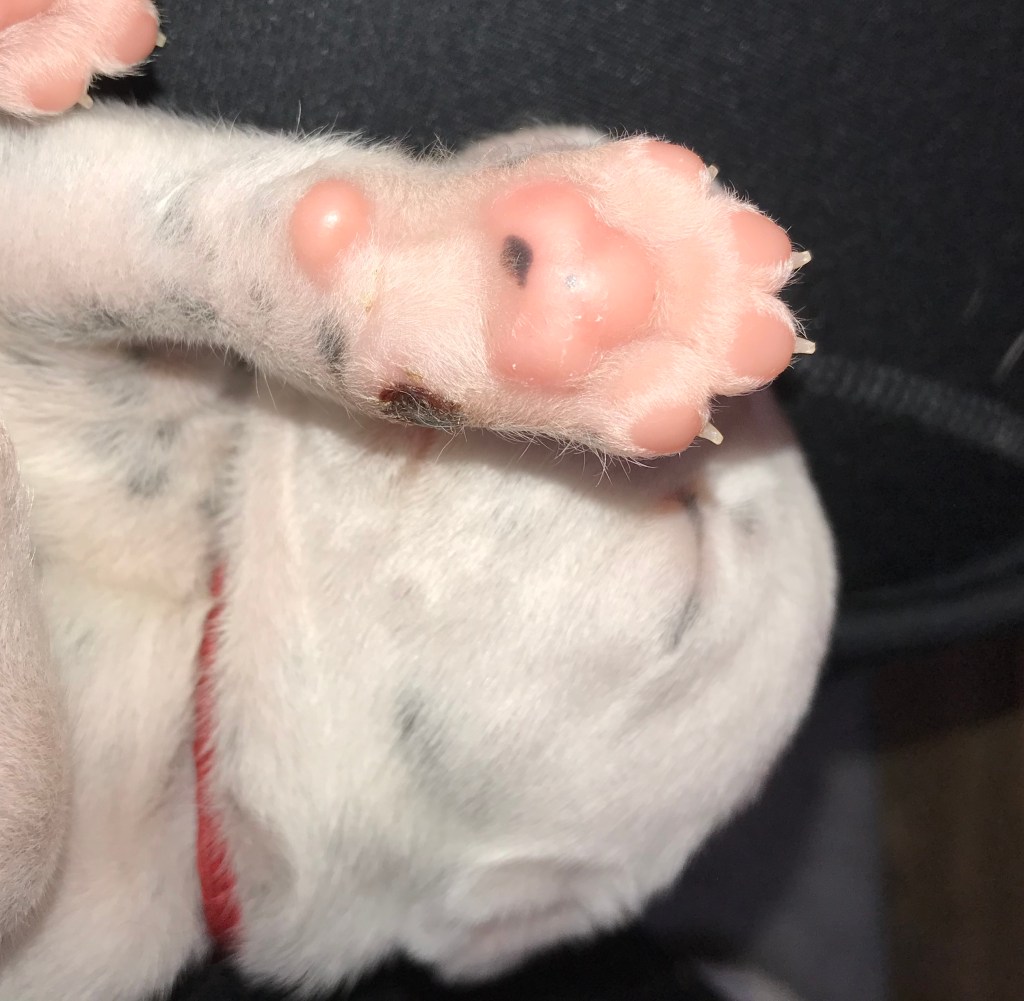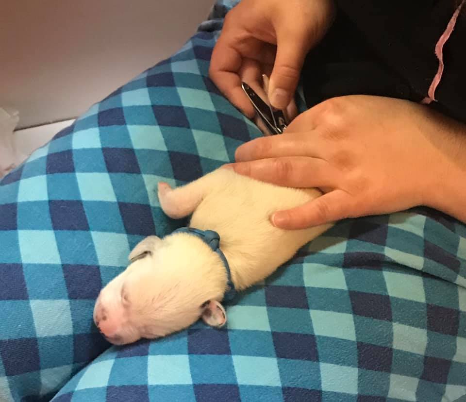 Today the puppies had their first nail trim..and yes, I am weird like that and counted exactly how many tiny nails that I clipped. 160 small nails on very wiggly puppies took a lot of patience, but we got the job done in about 40 minutes. Just to give an idea of how big these tiny nails are, at this age they are about a millimeter or two in width and two – three millimeters in length.