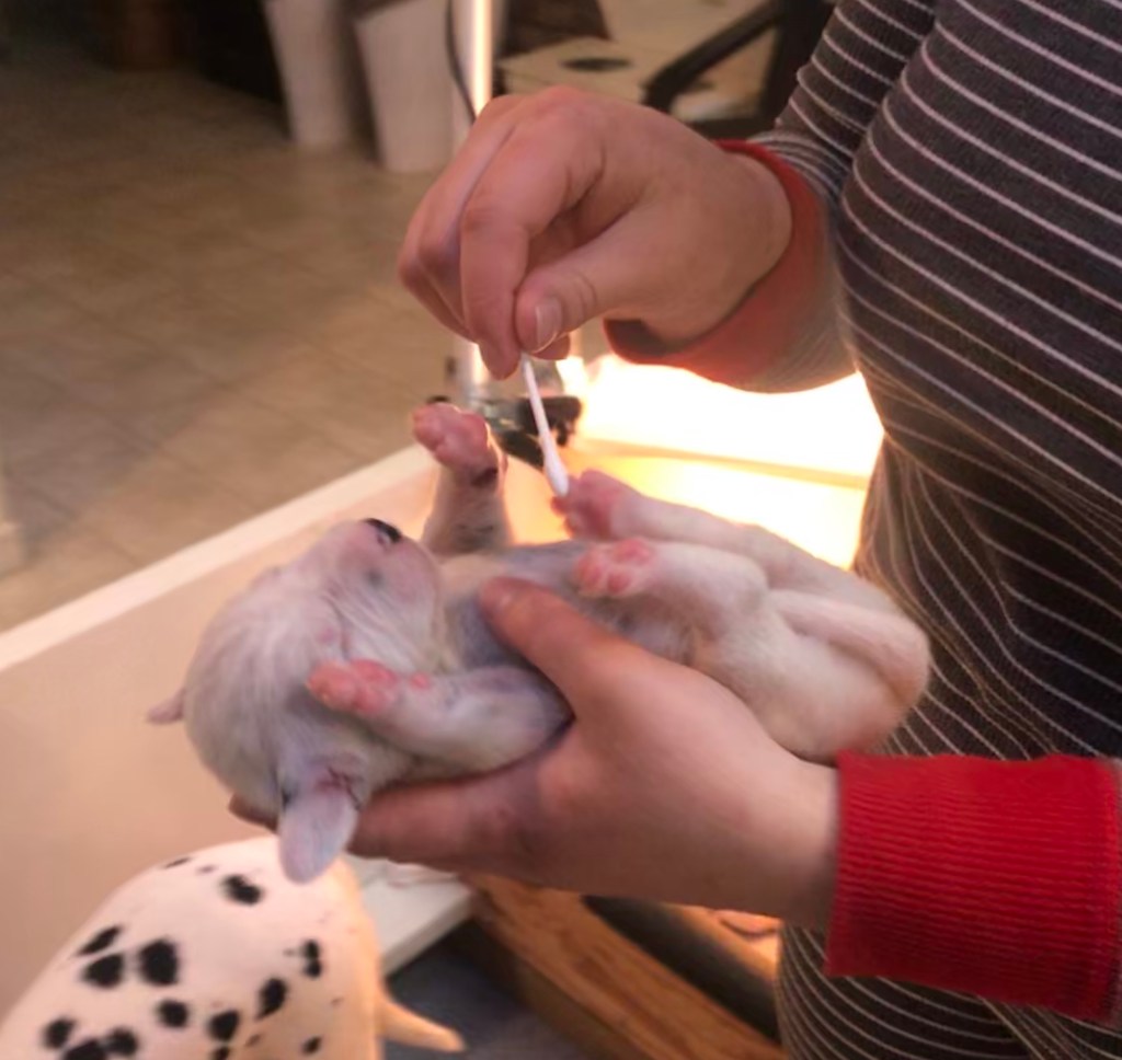 | 5. Thermal stimulation Use a damp towel that has been cooled in a refrigerator for at least five minutes. Place the pup on the towel, feet down. Do not restrain it from moving. Time of stimulation 5-10 seconds |