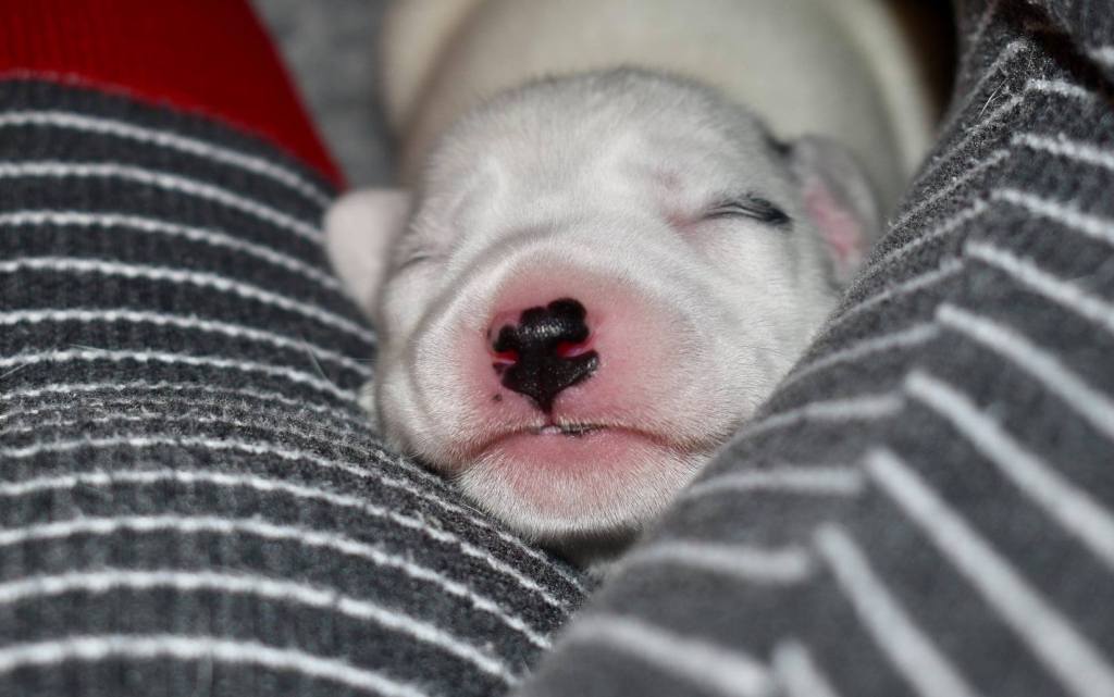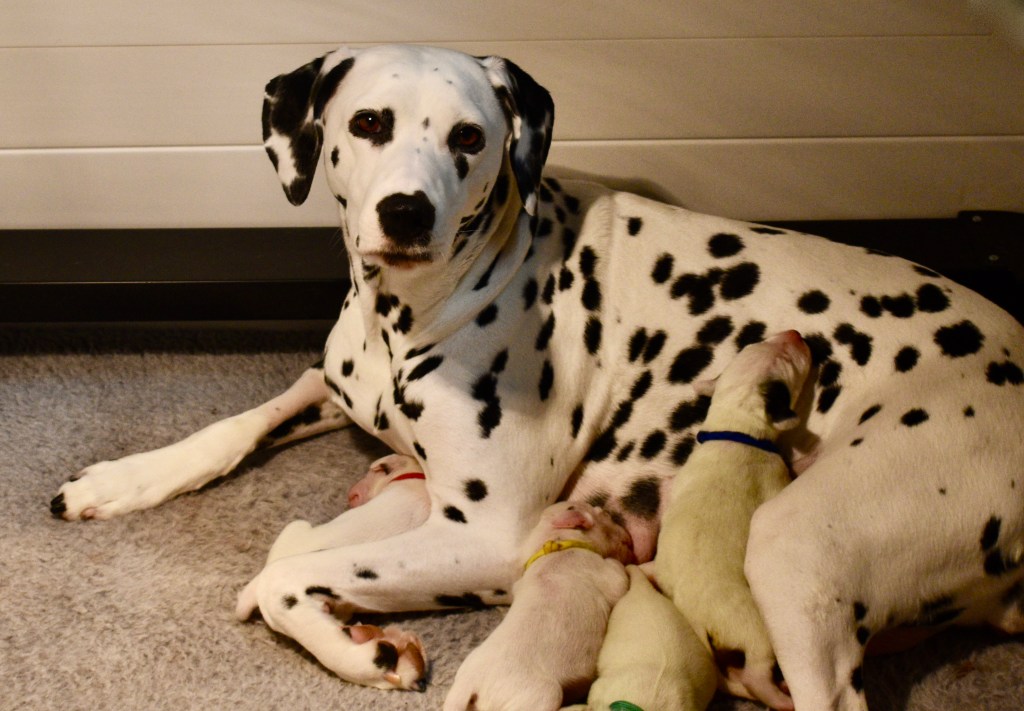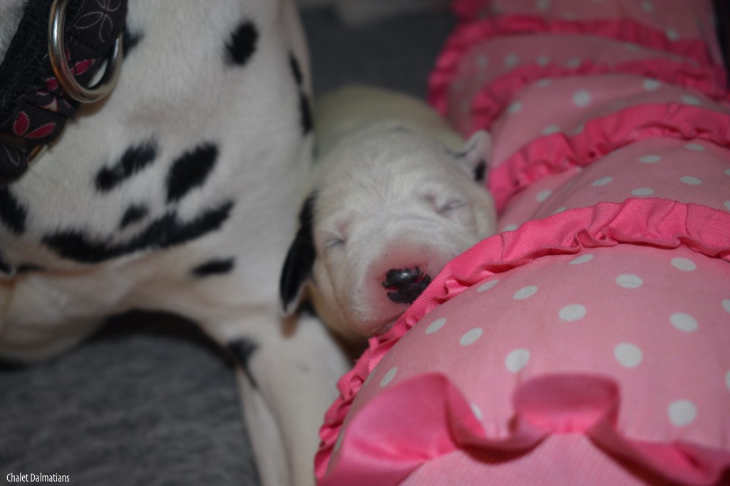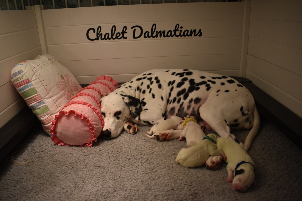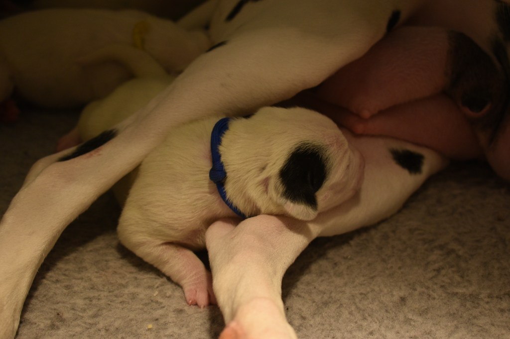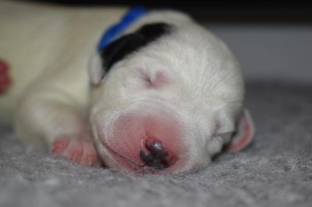 We are all doing great! Our humans took us and Momma Kimber home. It was our first car ride, but we all did awesome! Mom was close by to show us the ropes of taking a nap on the way home. When we got home she couldn’t wait to nurse us! I don’t know who was happier, us…or her! She was also a kissing machine and makes sure that we are all fed, warm and clean!