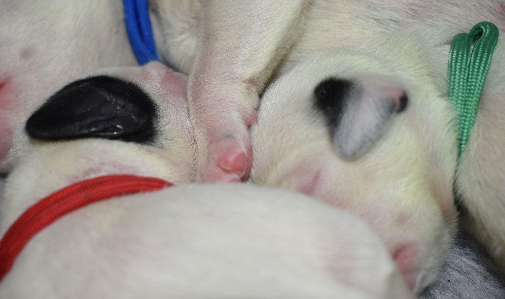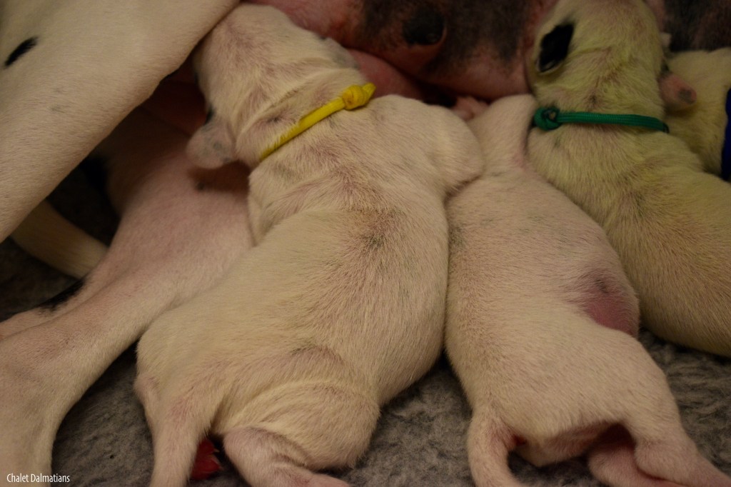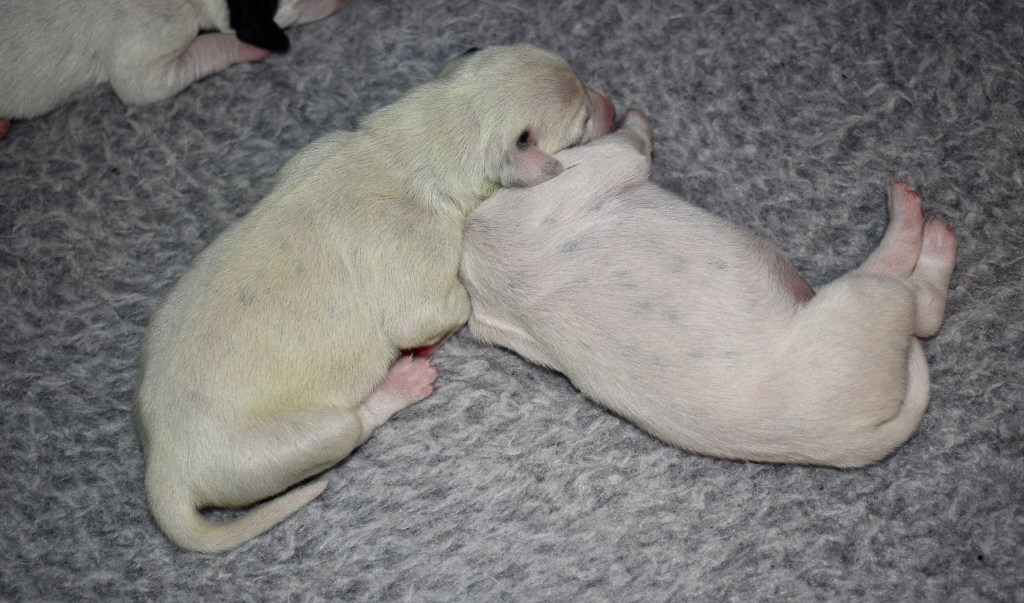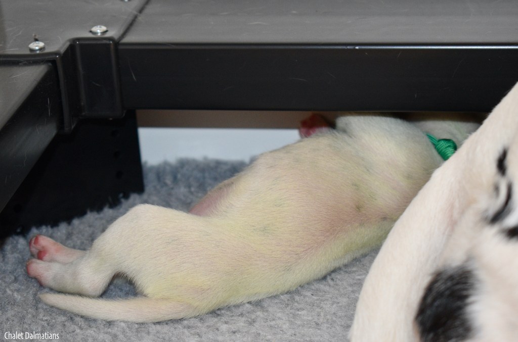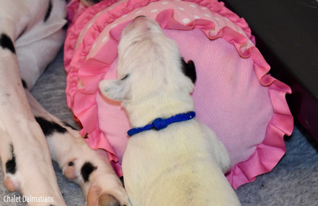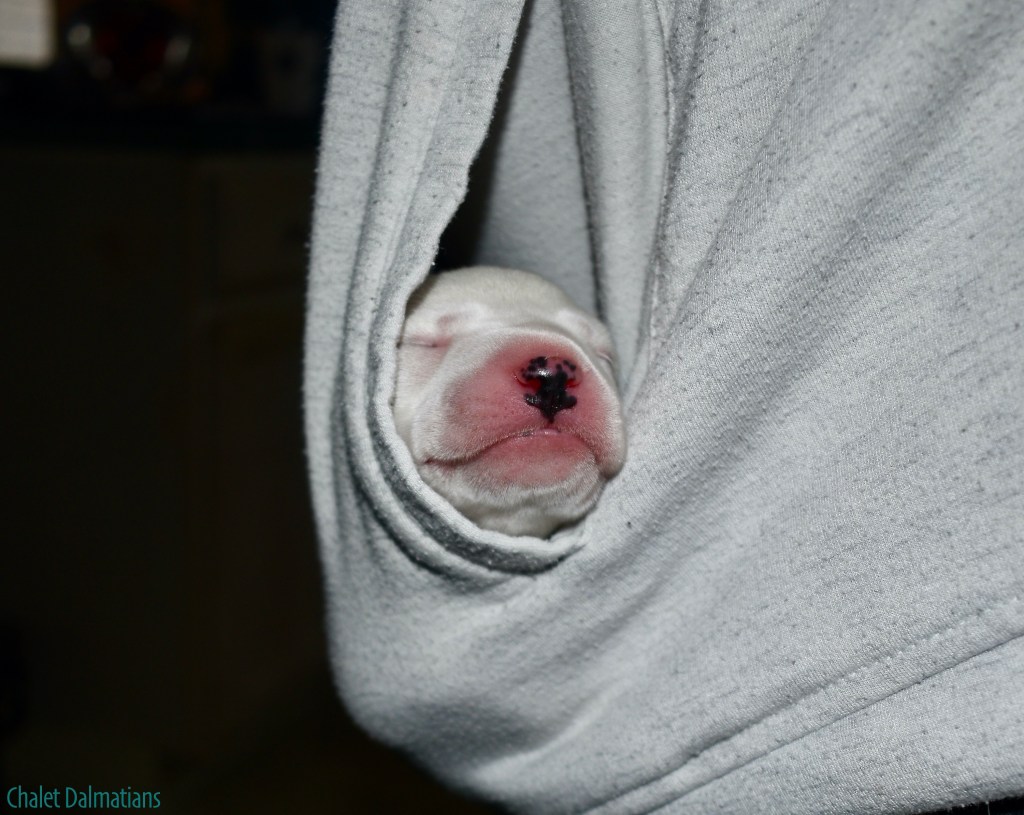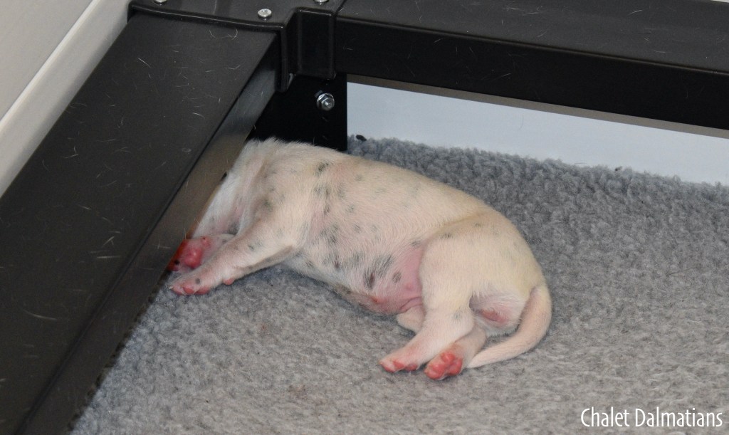 Do you believe that we are all gaining 3-4 ounces a day? The humans say that we are all super healthy and above average in our weight range! …And our spots are staring to come too! If you look really close you can just see some of them starting to appear in our fur.