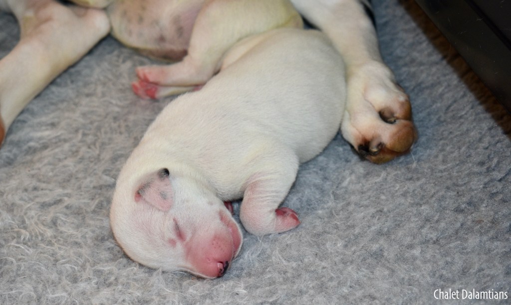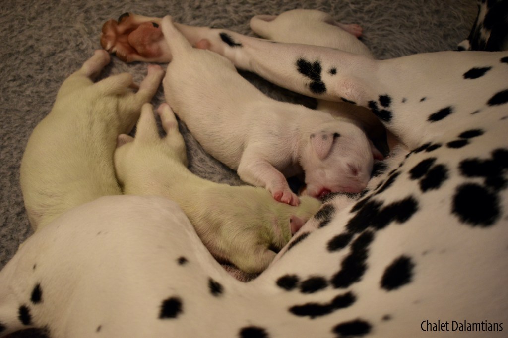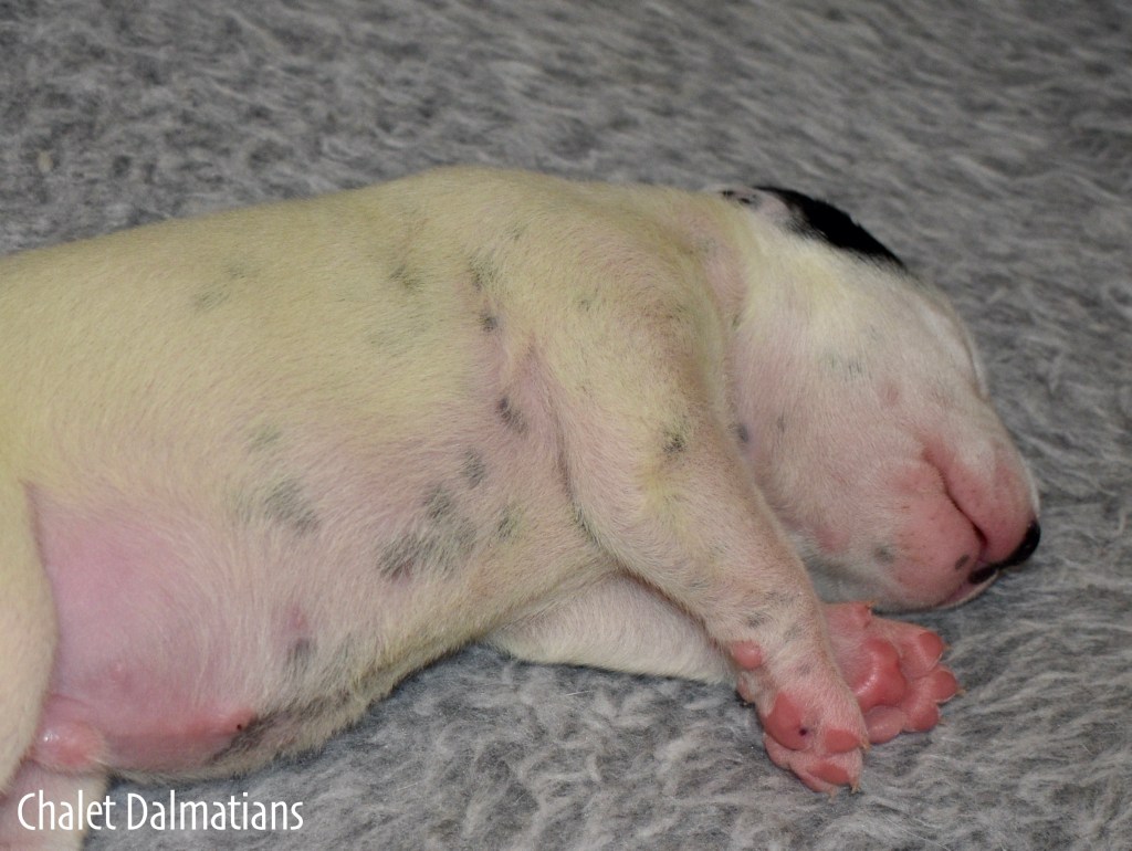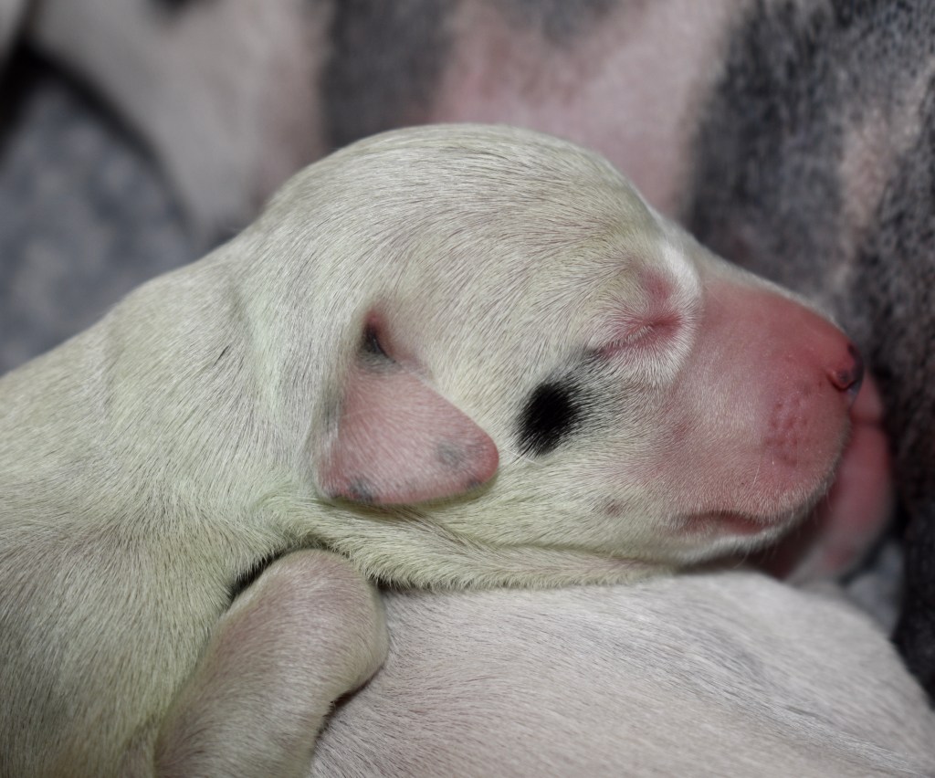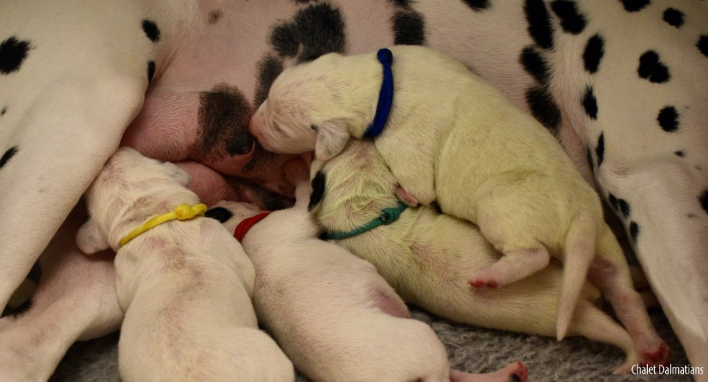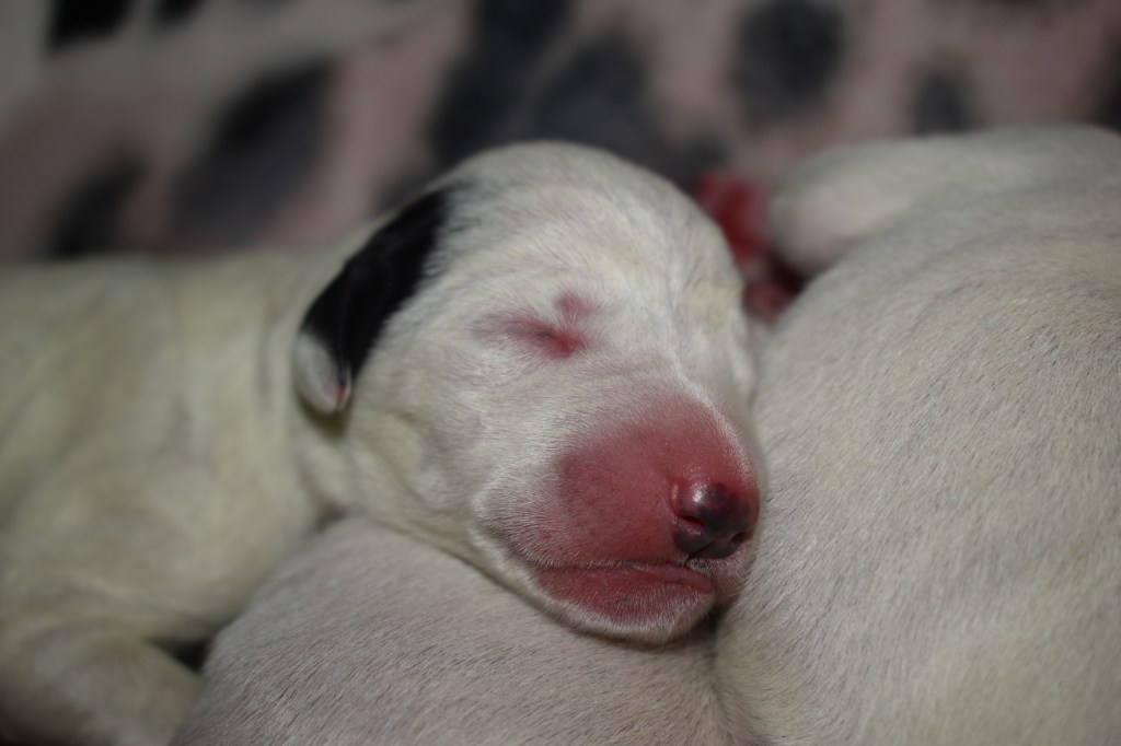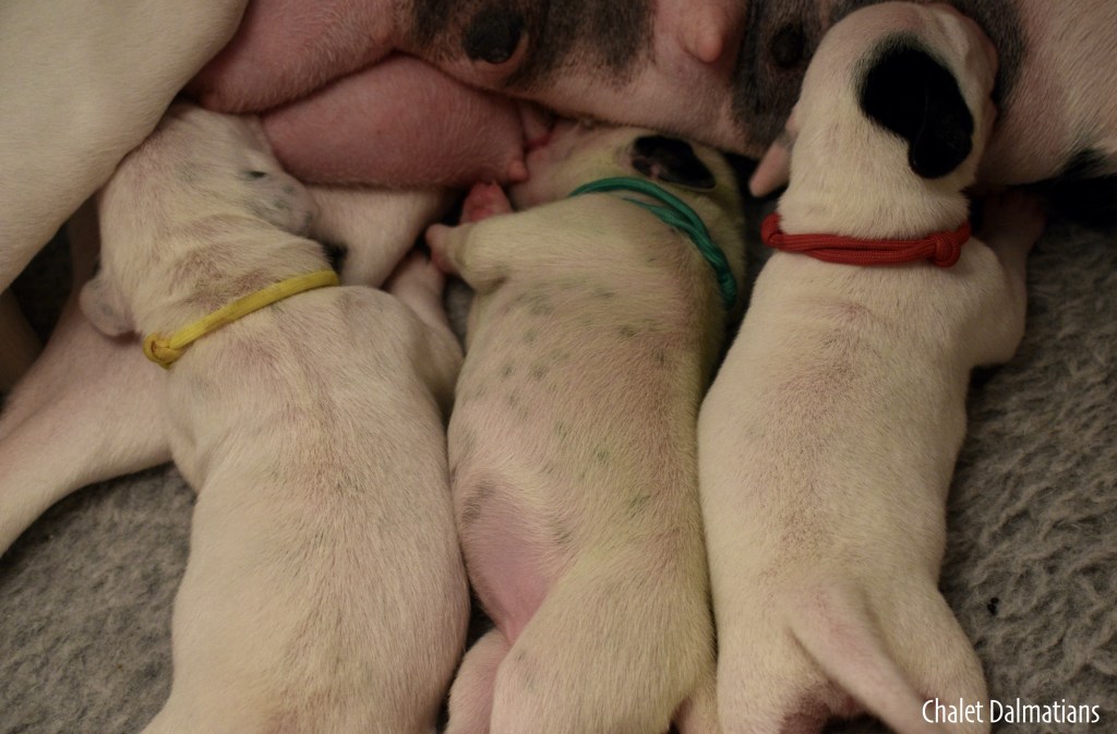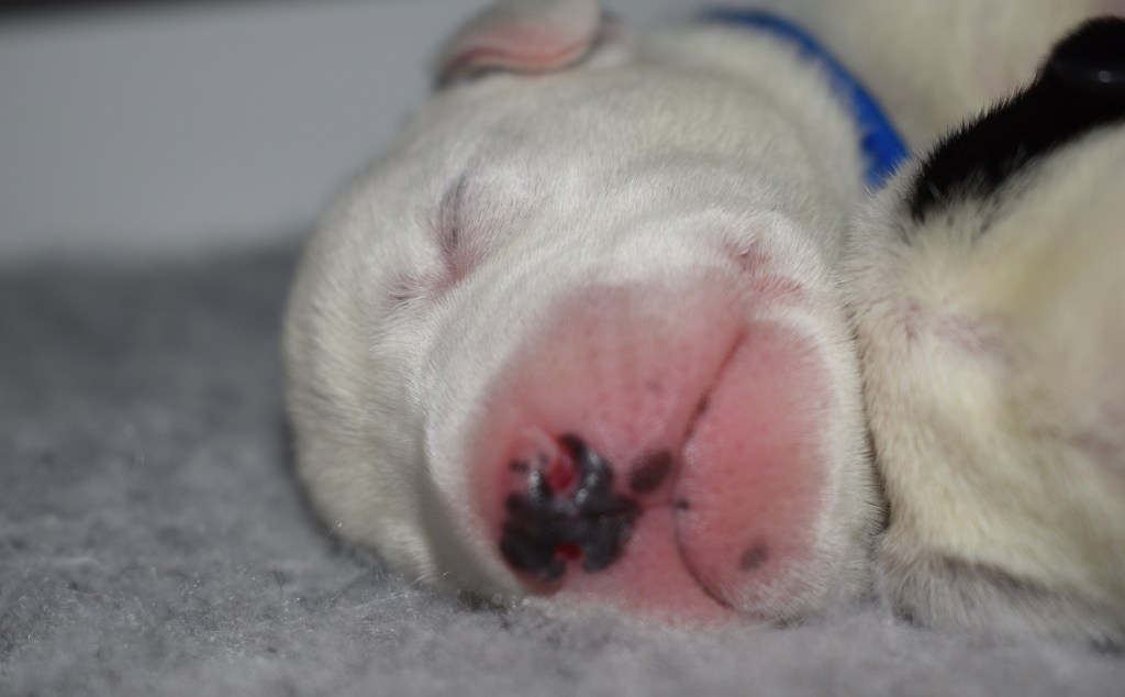 Do you believe that we are all gaining 3-4 ounces a day? The humans say that we are all super healthy and above average in our weight range! …And our spots are staring to come too! If you look really close you can just see some of them starting to appear in our fur.
