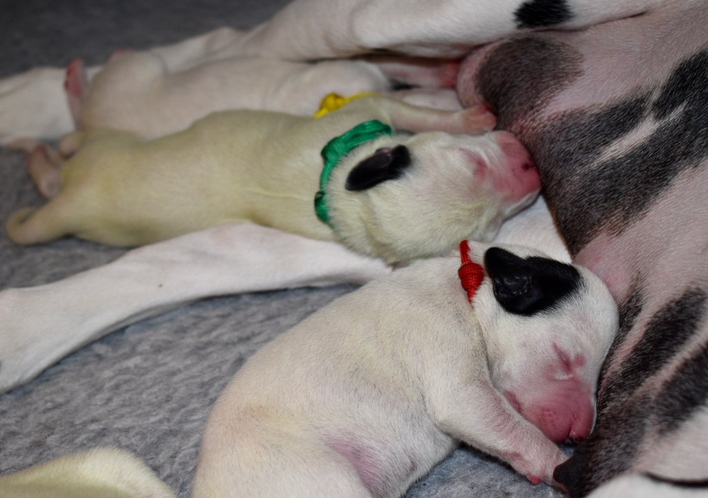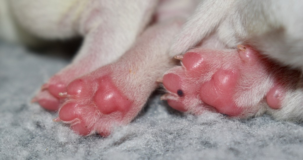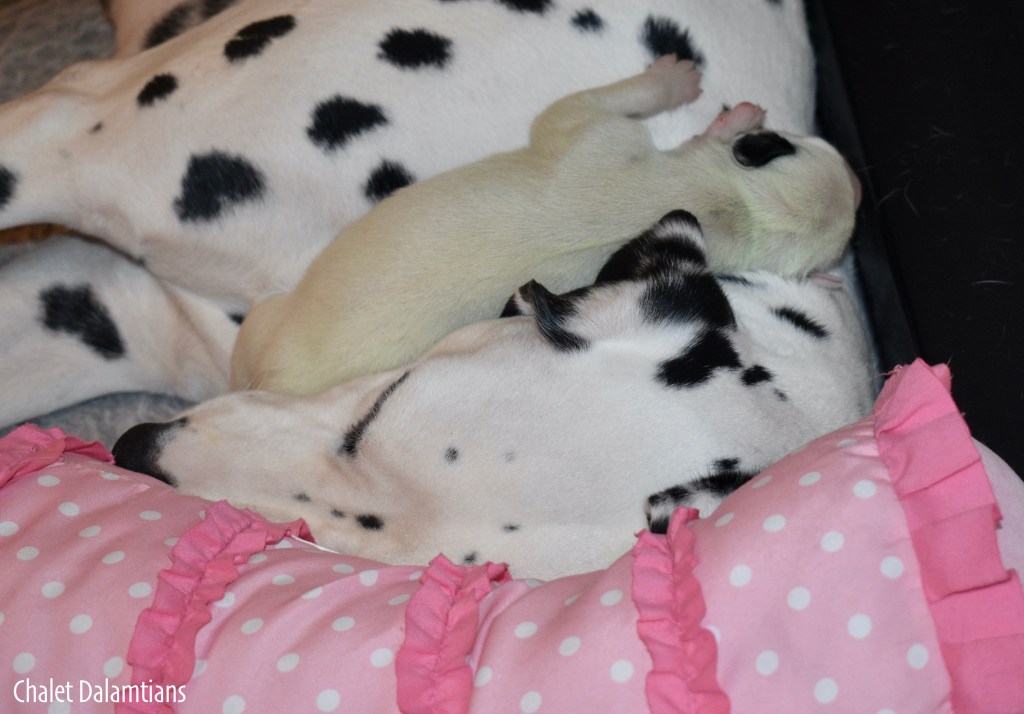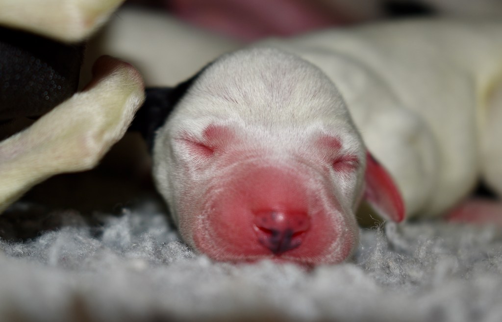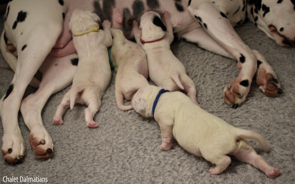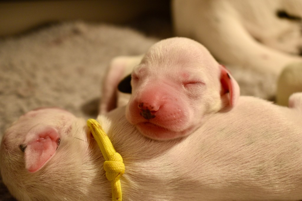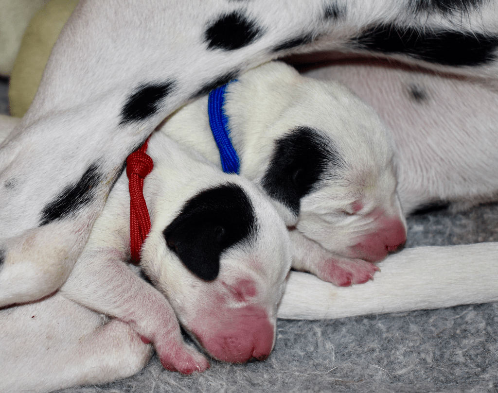 Do you believe that we are all gaining 3-4 ounces a day? The humans say that we are all super healthy and above average in our weight range! …And our spots are staring to come too! If you look really close you can just see some of them starting to appear in our fur.