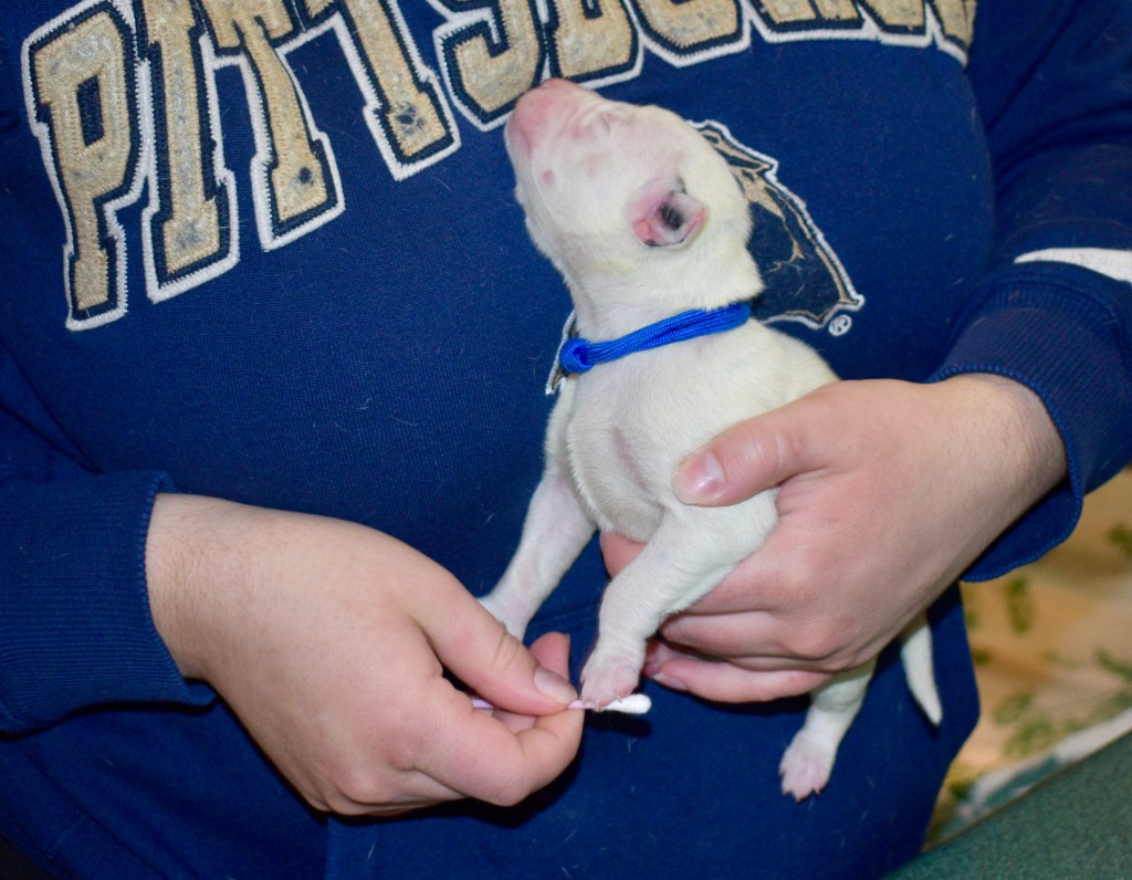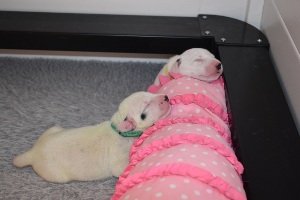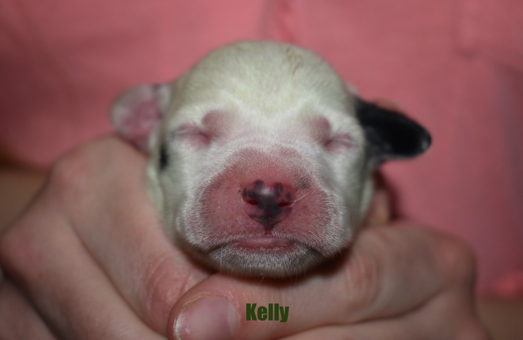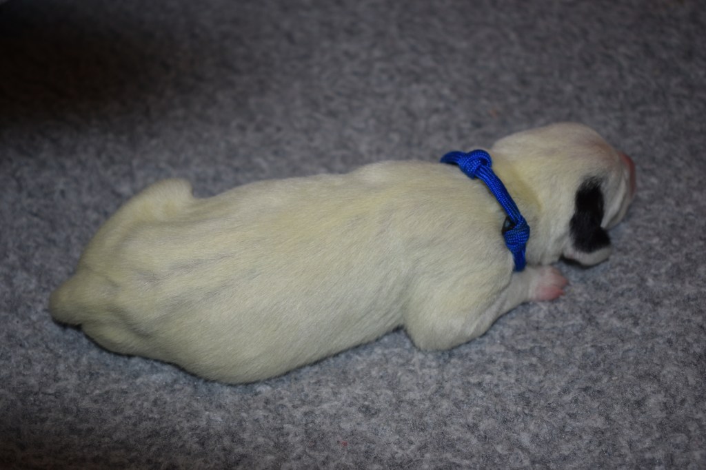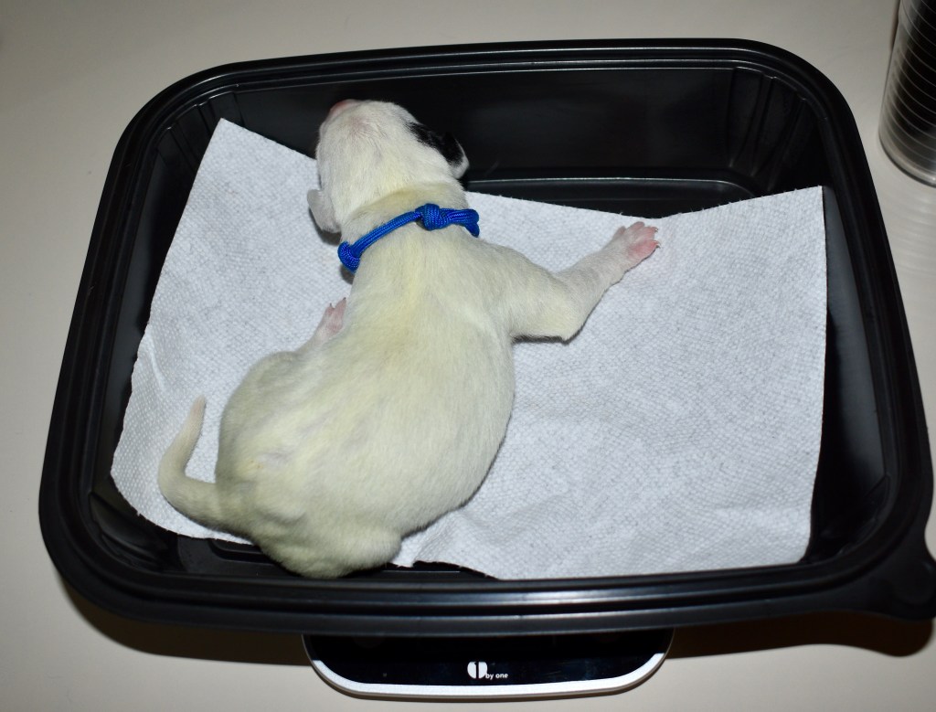 I want to introduce Bosley, Jill, Kelly and Sabrina! Bosley wears blue and is a piece of work. He kept trying to climb out of the warming box on the way home and is always on the move! Jill is also pretty active, but it could just be that there is a lot of room to move around. Kelly loves to nurse and is often found looking for a new place to find milk when she empties the first teat, just like Bosley! And Last but not least Sabrina is always looking for someone to cuddle up next to! I sometimes find her nestled up in Kimber’s neck to keep warm. Here’s the puppy’s perspective on their first day!