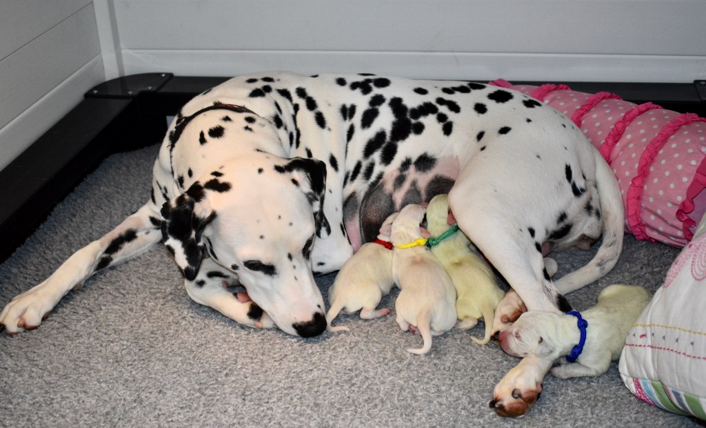 Not many new things happened today. Kimber has settled into her new normal for the next few weeks and the other three big dogs are also pretty content with having more down time now that the puppies are here as well!