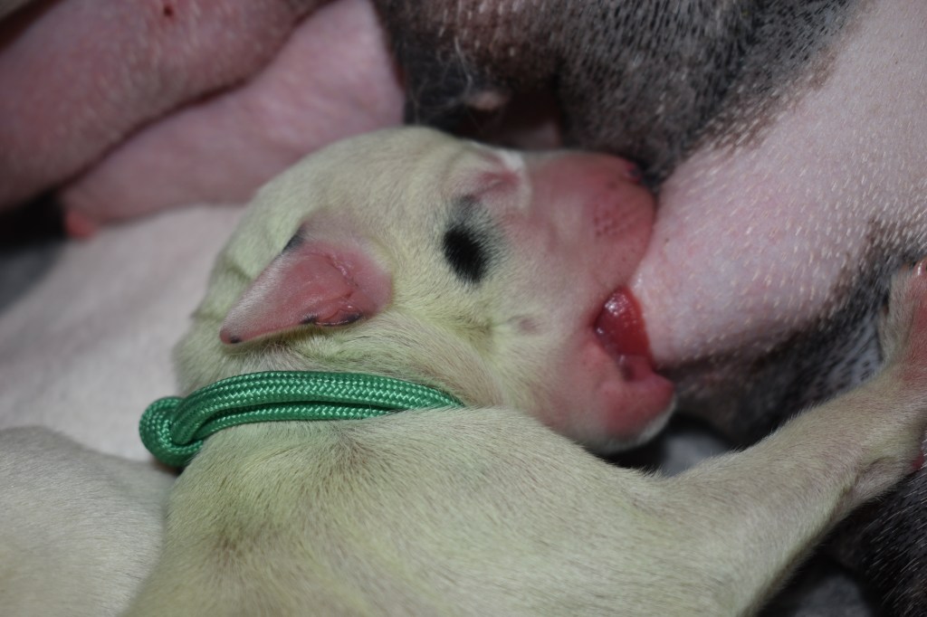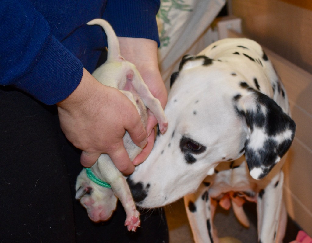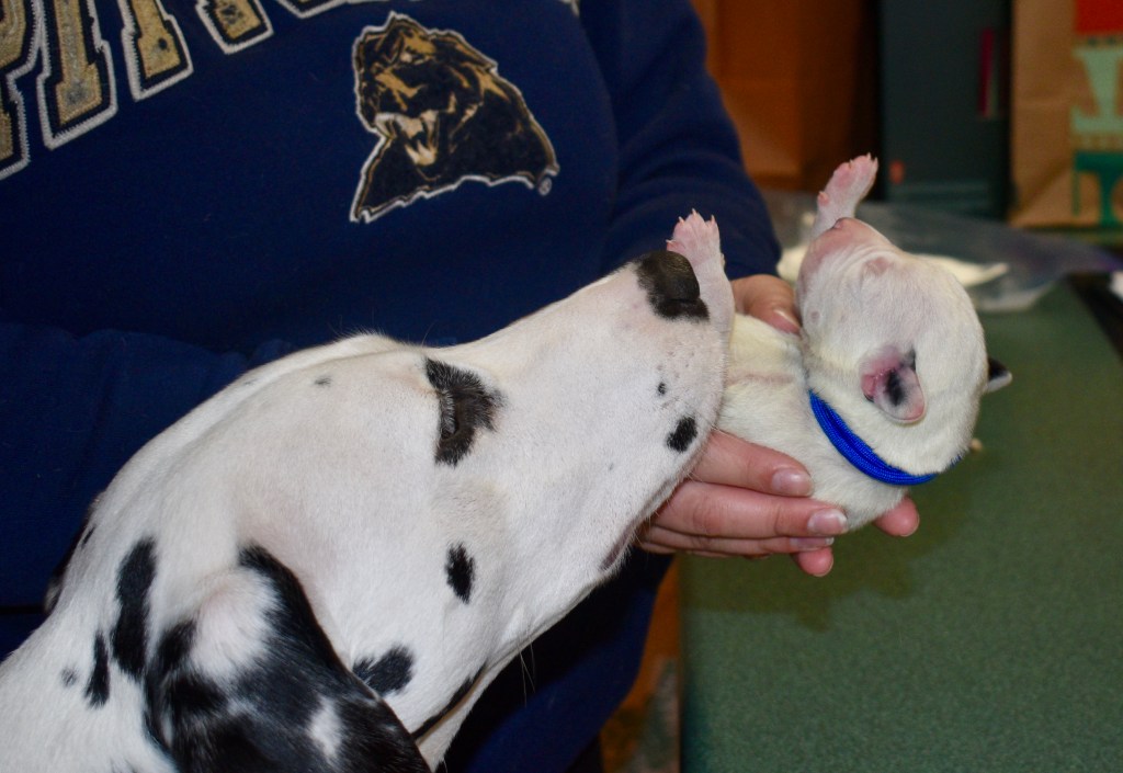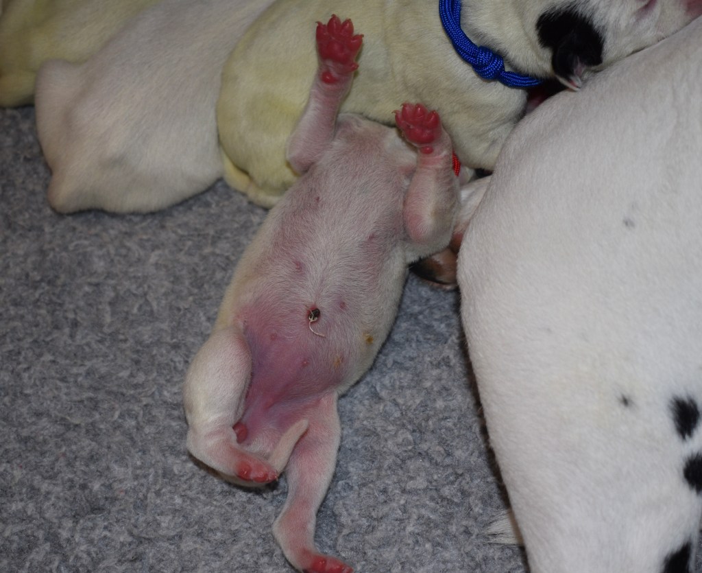 Today is the day that all of you have been waiting for! We decided that we would make our first appearance out into the great big world! Momma Kimb had Dr. Harr lend a helping hand by performing a cesarean section. We were born between 10:30 AM and 12:00 pm, and we know that Bosley was first because he’s the only boy, but after that…Dr. Harr didn’t mention the order of the us girls to the humans! Some of us were a bit green due to some meconium, which is completely normal, but we will be a tad stained for a few days… so don’t be alarmed when some of us appear in pictures dressed up as the Hulk or Green Lantern! We can all be superheroes when we want to be!