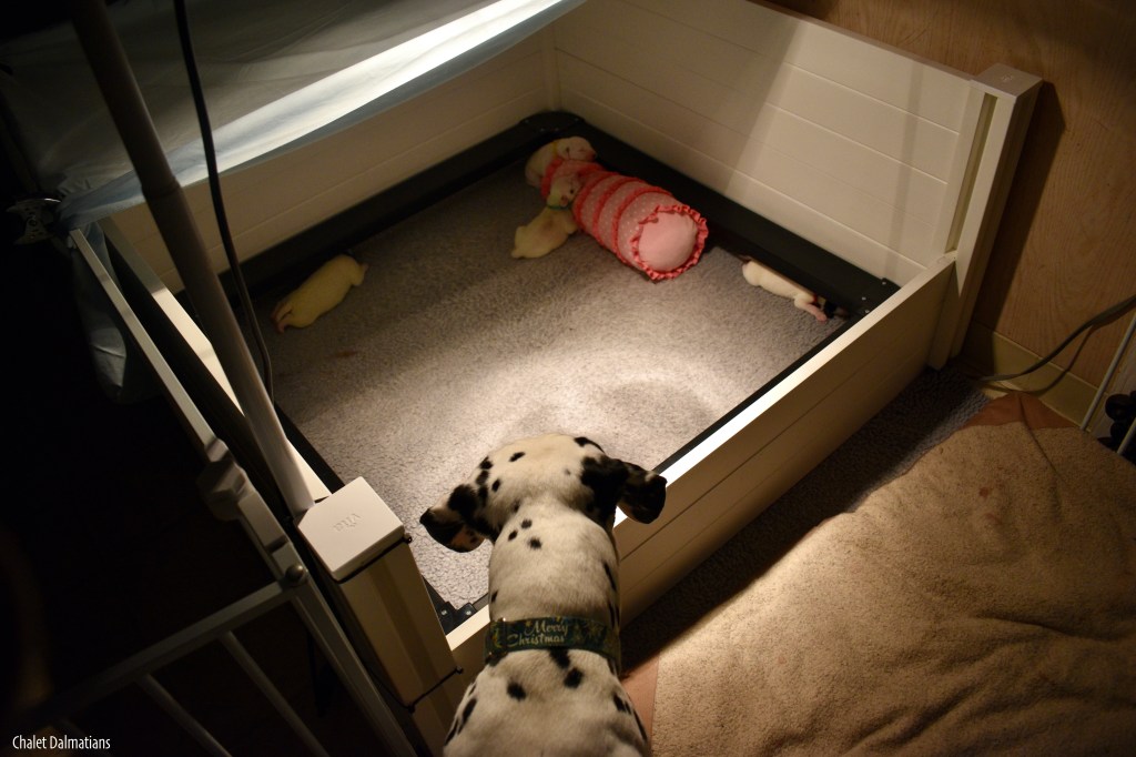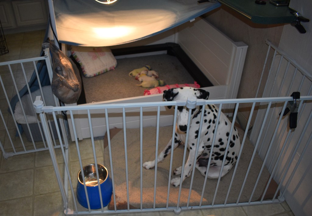 Big Brother Wesson was promoted to being our Head Babysitter this evening and was even designated his very own office (AKA the gated area just outside of the whelping box in the gated area)!