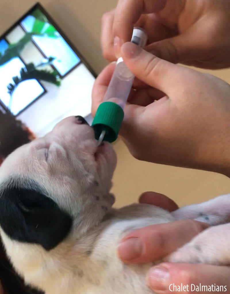 If I have to be honest, my babies weren’t really all that upset. Bosley almost seemed to like it. Kind of as if he was eating a lolli-pop. Here Sabrina is in the middle of her swab.