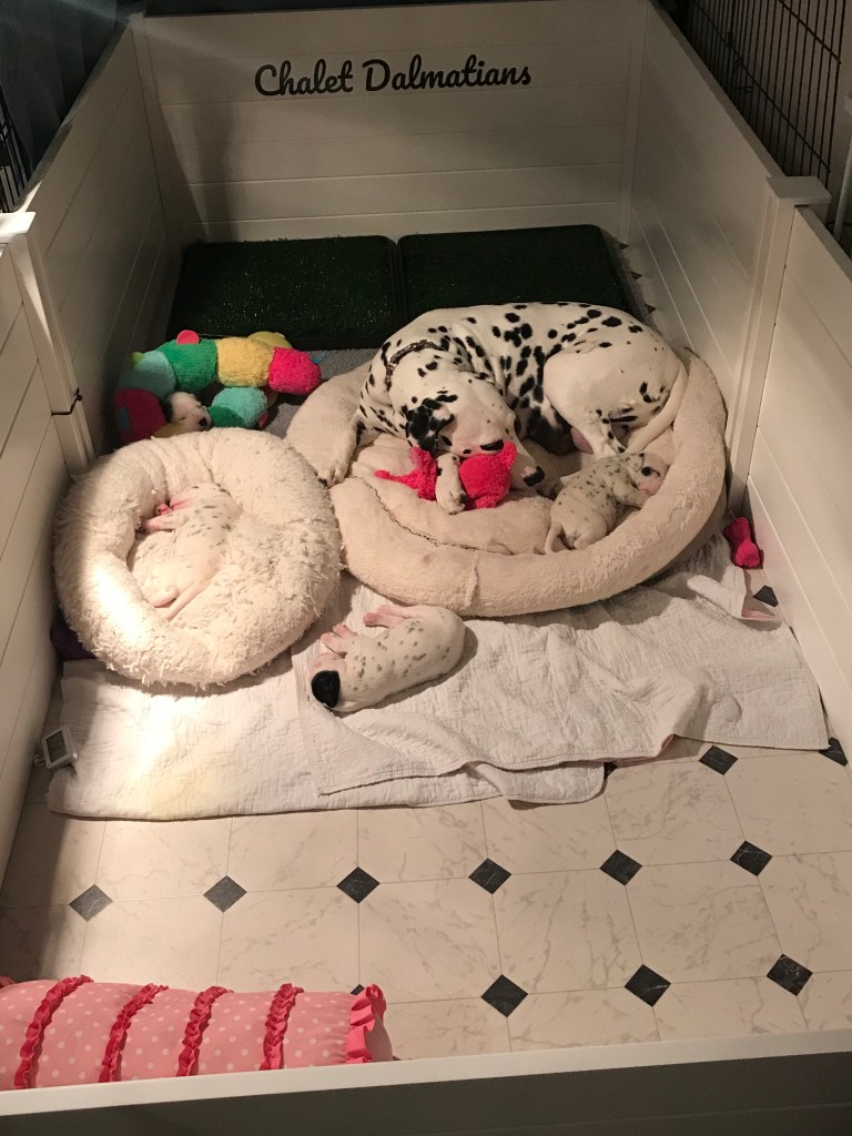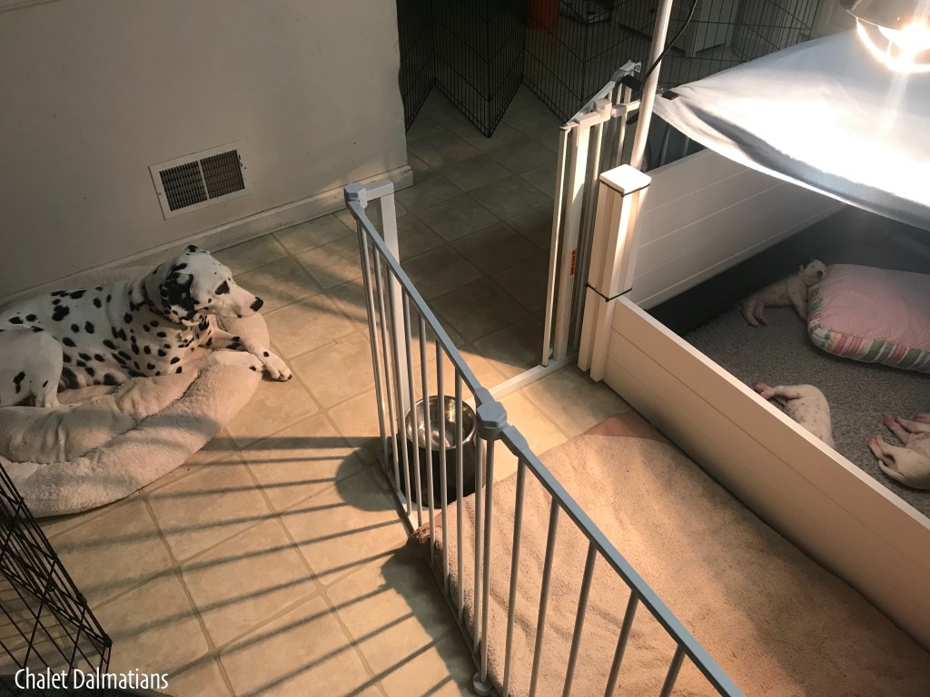 We are going to keep everything mostly the same until this evening when we will switch up your sleeping arrangements. Since you are releasing on your own now, we added a potty area and a bumper bed.