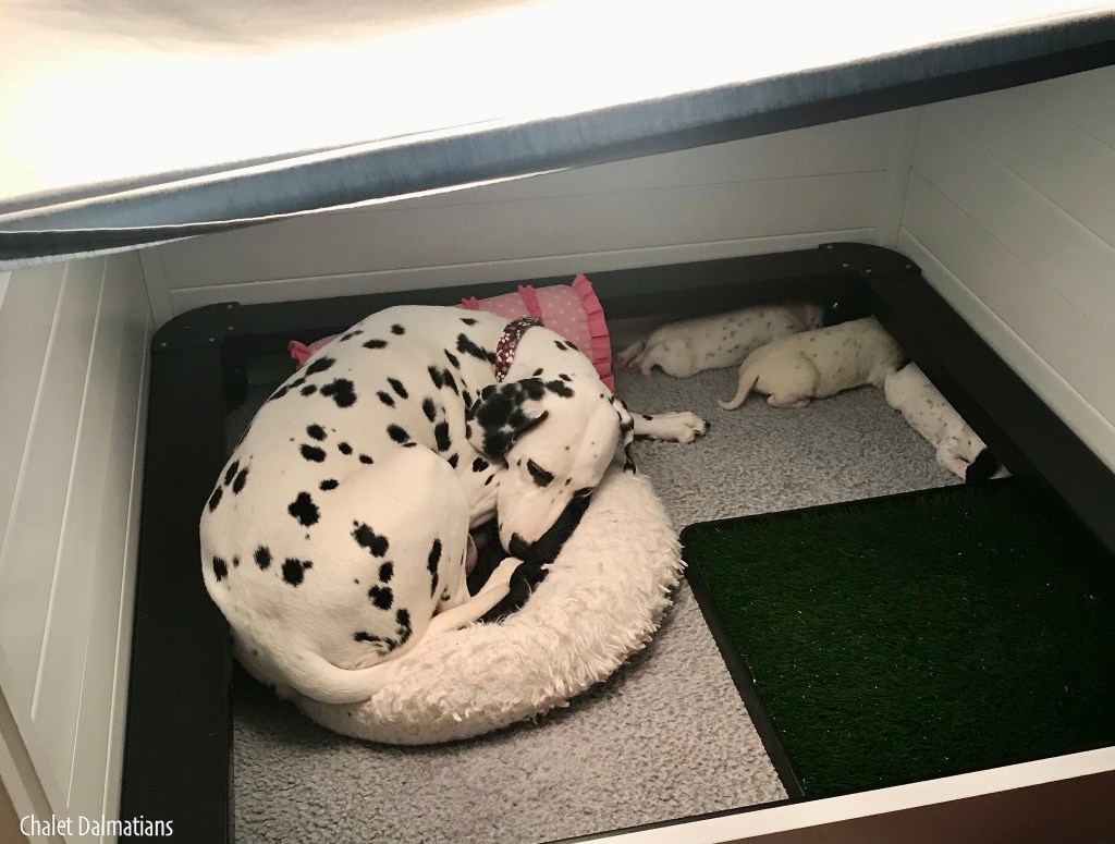 Now, for the new business…they added some type of “Potty Patch” as they call it, but most of us like to take naps on it. Apparently now that we are releasing on our own, we are supposed to use it to go pee and poop. If we start to use it for that type of business, I doubt that you will find any of us sleeping in there!