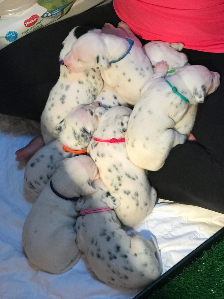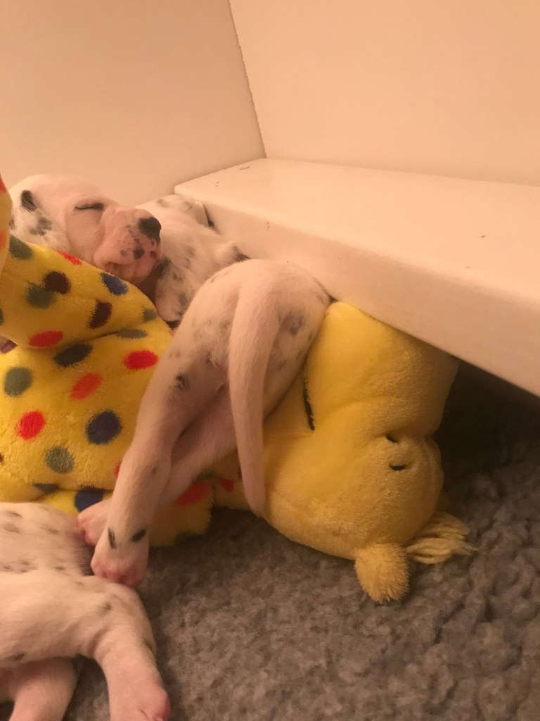 Today after the puppies nursed for a while at the milk bar I saw a puppy party on top of Kimber. Needless to say everyone was very happy with a belly full of milk and passed out.