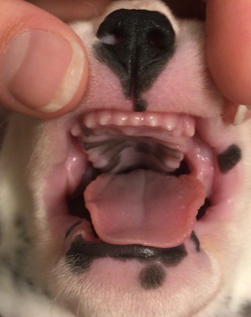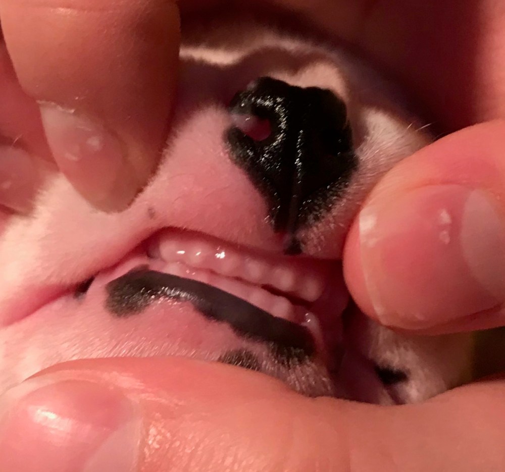 Before I put a picture of Blossom’s little baby teeth bumps coming in. Here is a before and after of her.