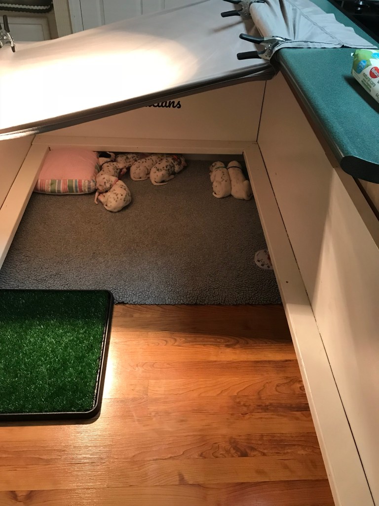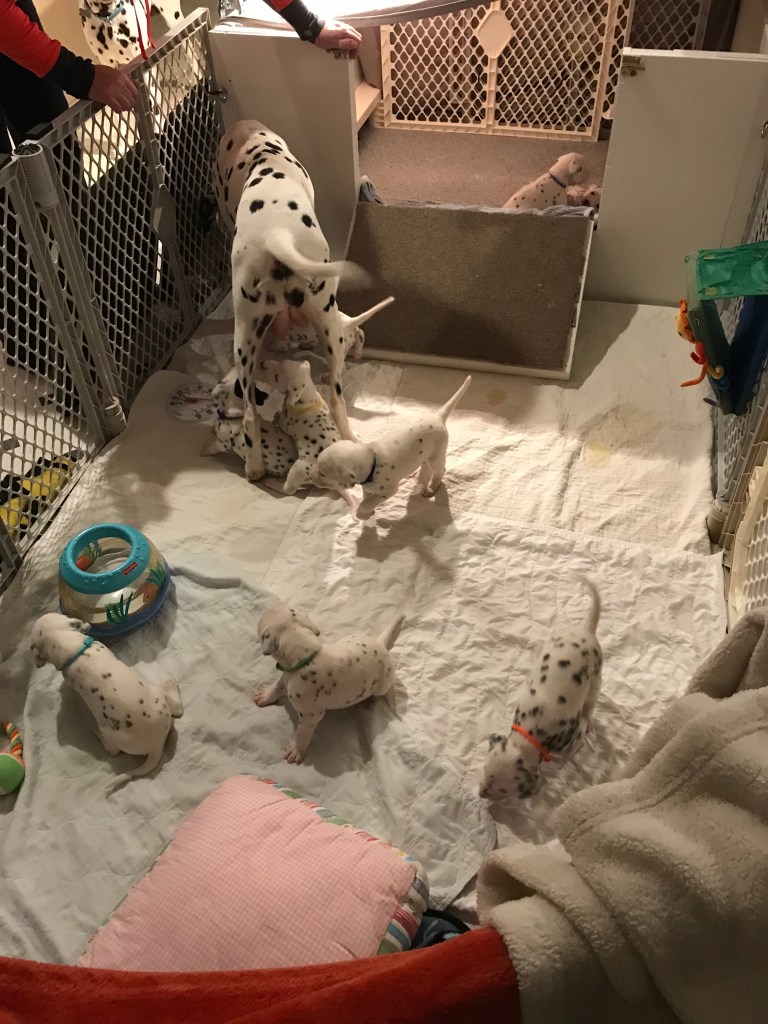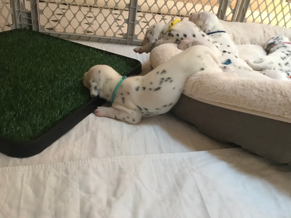 Since we had a lot going on for the holiday and we were pretty busy, we didn’t take many pictures. We haven’t made any major changes, but we have noticed some things. More and more puppies are making it to the potty patch. When we are cleaning it, the puppies go to the area where it used to be to relieve themselves.