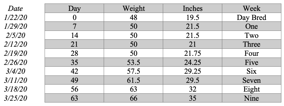Other than that, startle and recovery, and training for my puppy call, nothing much has changed, so I though that it would be a good day for me to share Kimber’s pregnancy progression pictures as well as how much she grew, although we didn’t take a picture when she was at 9 we