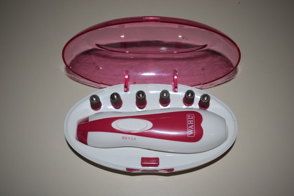This is the tool that the humans will use for when we are still tiny puppies, because it is a softer style and not as loud. It doesn’t work as well once our nails get harder in a couple of weeks, but it is great for introducing us to the world of vibrations on our toes when we are young!