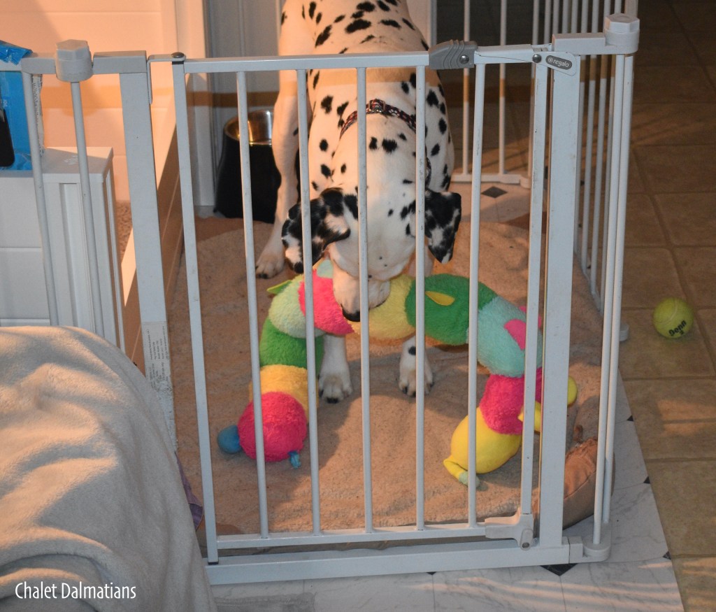 Usually we all decide to play at different times or chew on someones ears as they are sleeping, but today, we decided to all play at the same time! Boy that was fun!