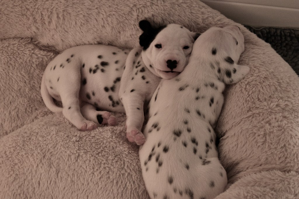 The humans also snuck in while we were sleeping and our eyes were closed to take some pictures with the nice camera. Our spots are really starting to come in!