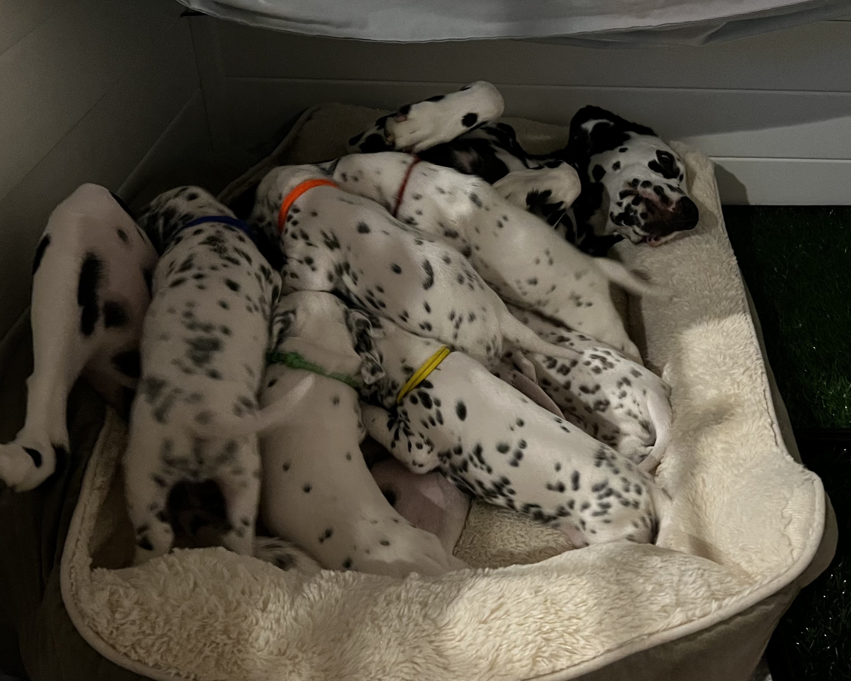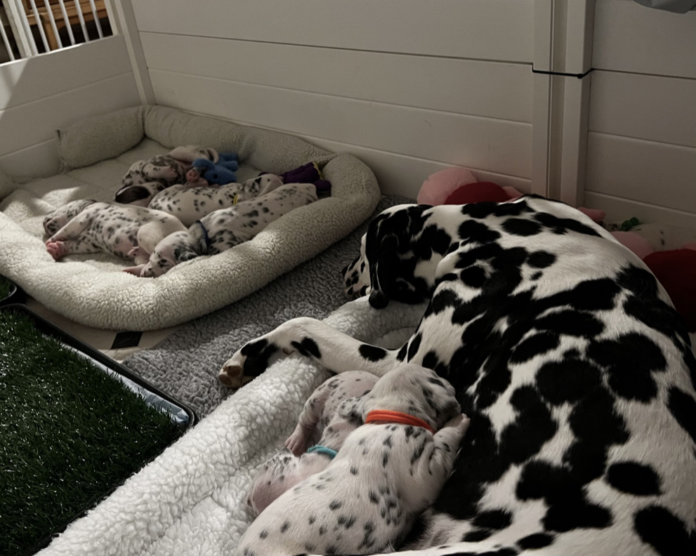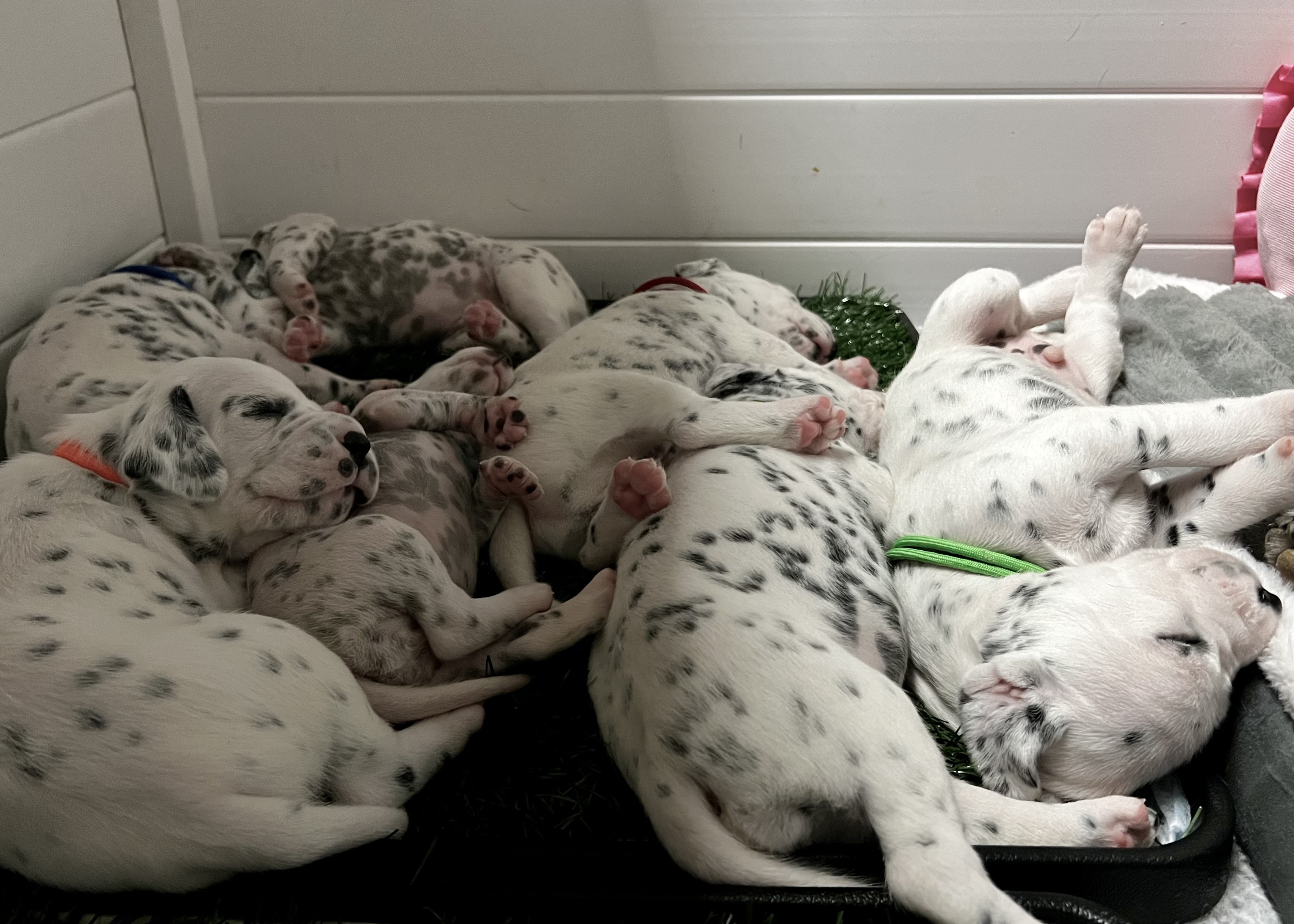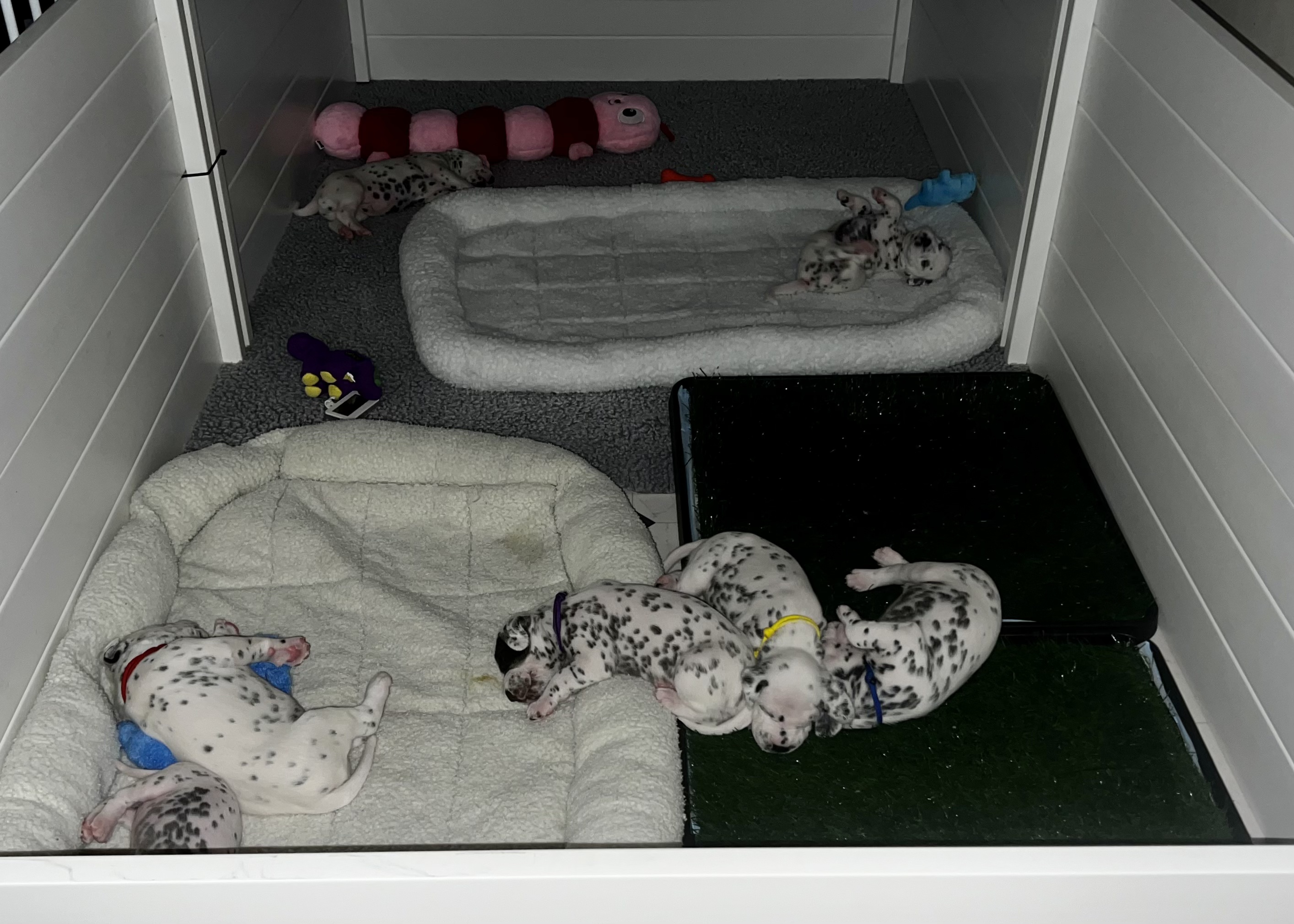 Speaking of potty patches, we have noticed more of the pups using them to potty in. We have also noticed more of the puppies taking a nap in them. When we need to move a puppy from the bed or in general, we always place them in the potty area to help them understand that that is where they do their business. Similar to when you have an older puppy that is learning to pee and poo outside. When they wake up, you take them outside even if they don’t have to go.