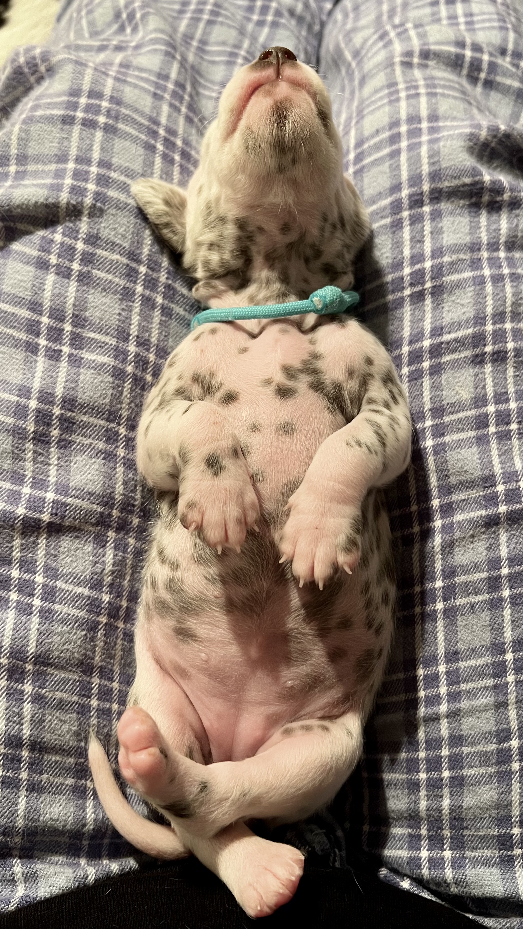 The puppies also had another nail trim. It might seem like they have lots of nail trims, but it is necessary so that they don’t scratch up Tipsy’s belly when nursing. Speaking of nursing, Tipsy’s favorite nursing position seems to be on her back.