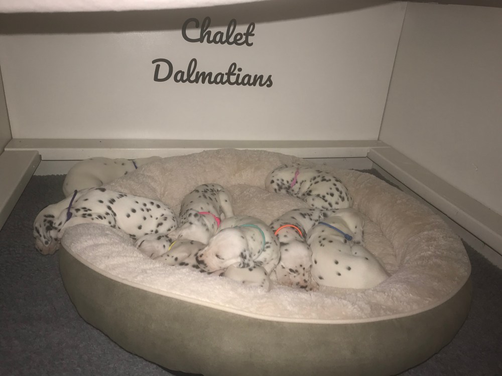 Back to the real reason everyone is here…PUPPIES. Speaking of puppies, guess who has had their first meal today? Yep. They have all eaten out of the saucer for the first time. Everything went exactly as expected. All of the pups slurped it (mushy puppy food and goats milk) up and they left us with a very nice mess all over them and the hospital pads. We made sure to keep our washing machine ready after this mess so we could put it right in and not have to worry about it. After everyone was clean they took a nice long nap.