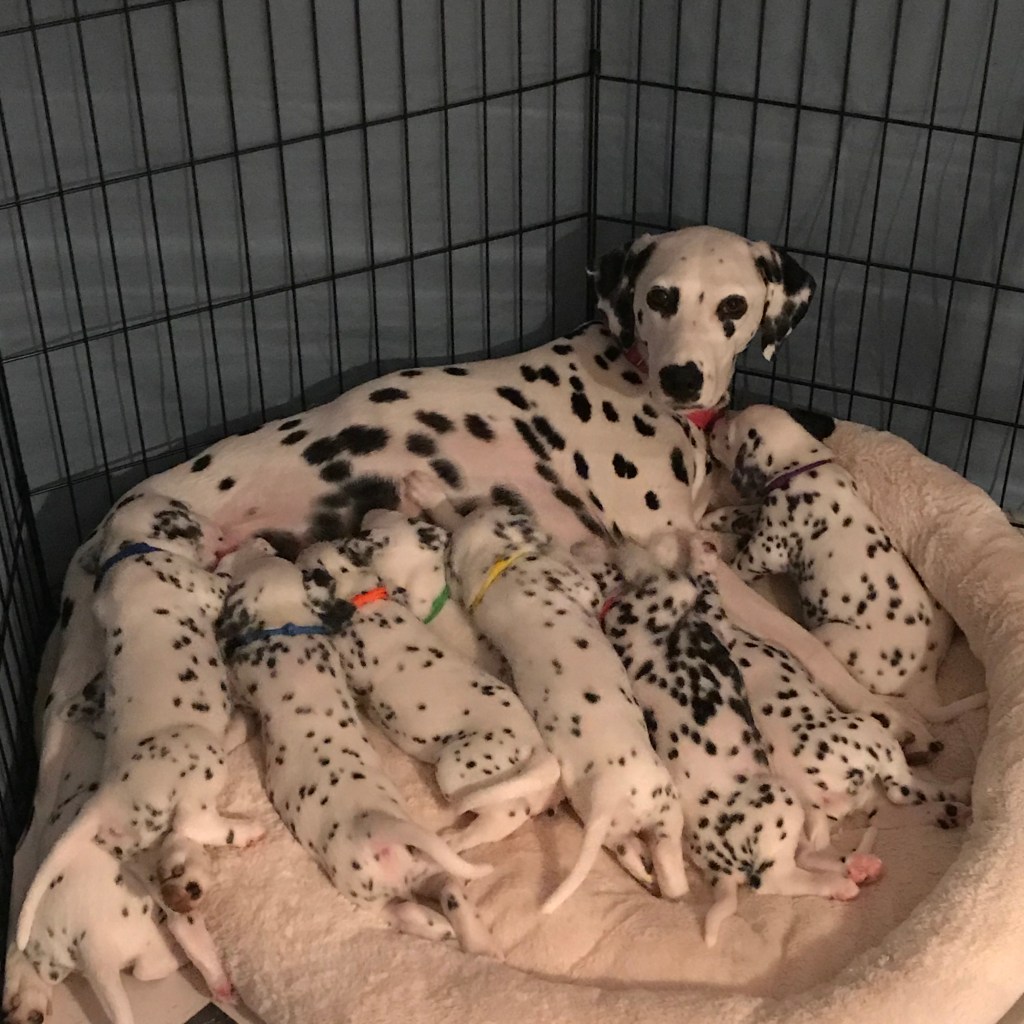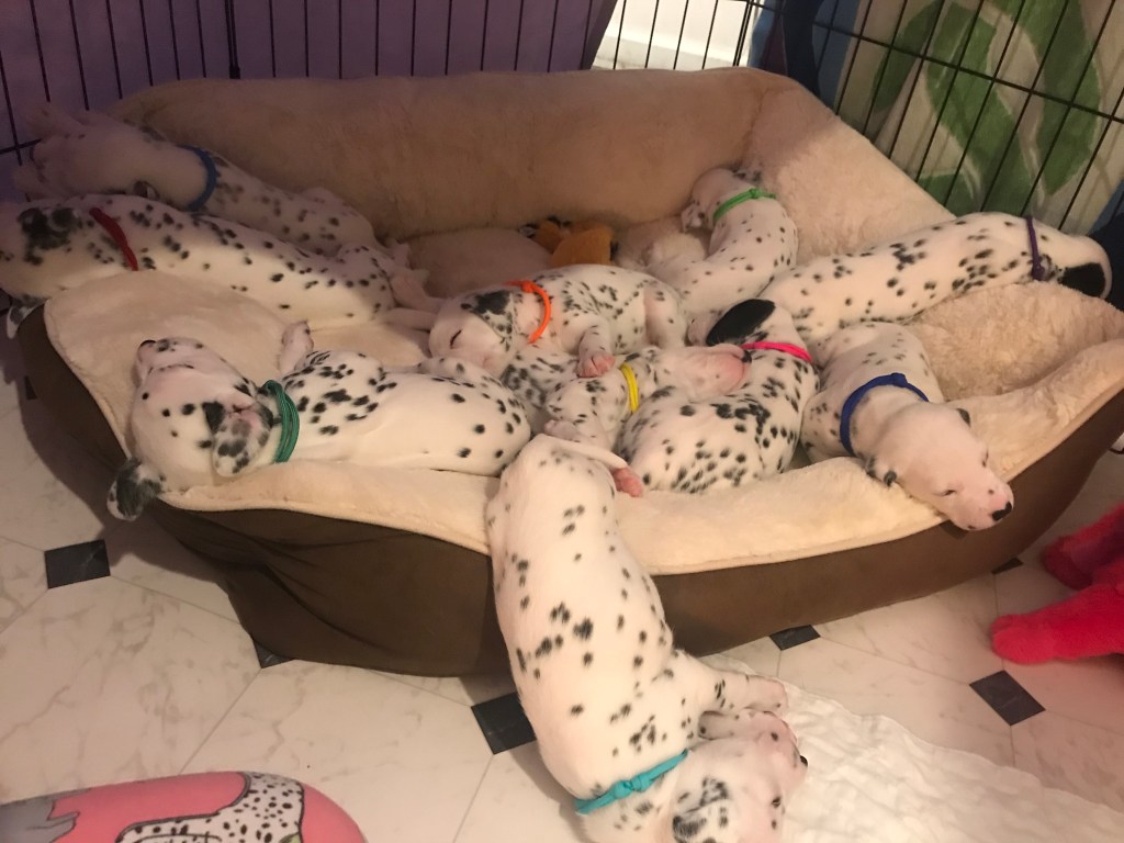 We had our biggest change today. We opened up the extension to the whelping box by using na ex-pen. Once the puppies are bigger and their heads don’t fir through the bars, we will switch to the big play yard.