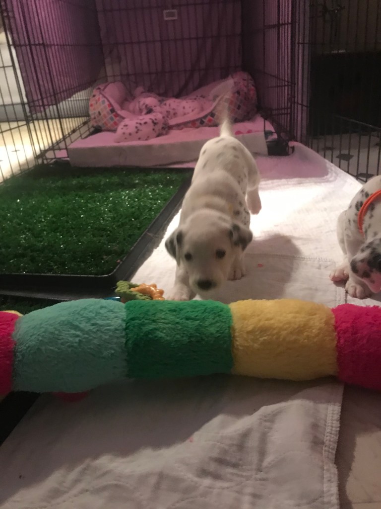 No huge change today but we did swap out some toys for other ones that are new to the pups late this evening. They seemed to really like them, which is a good thing because we will start to do that every day or every other day now that they are pretty mobile.