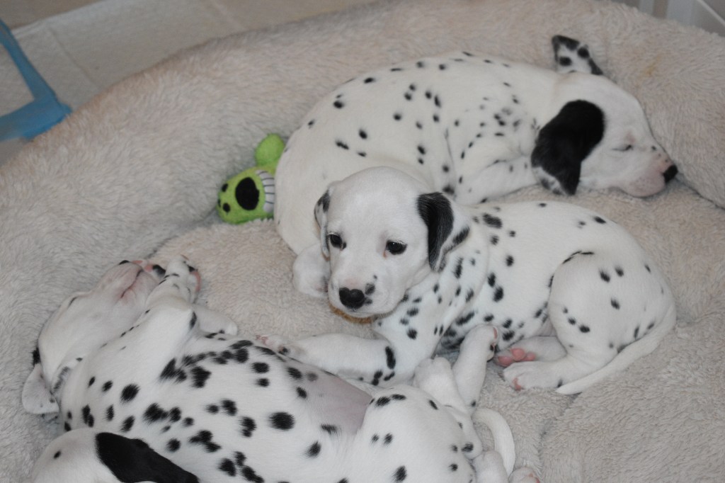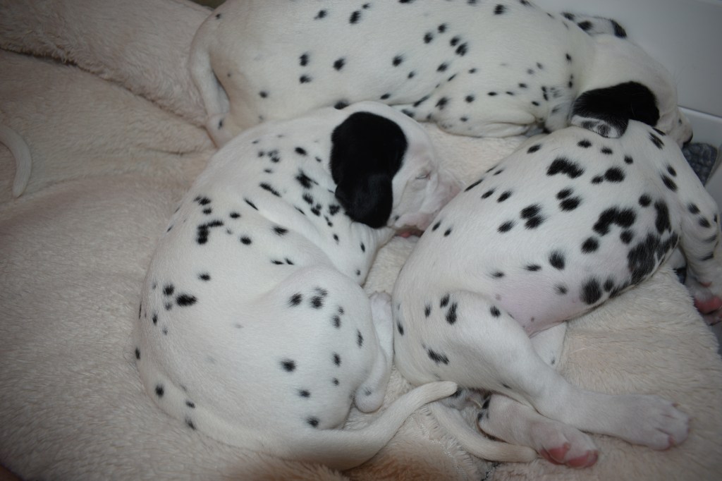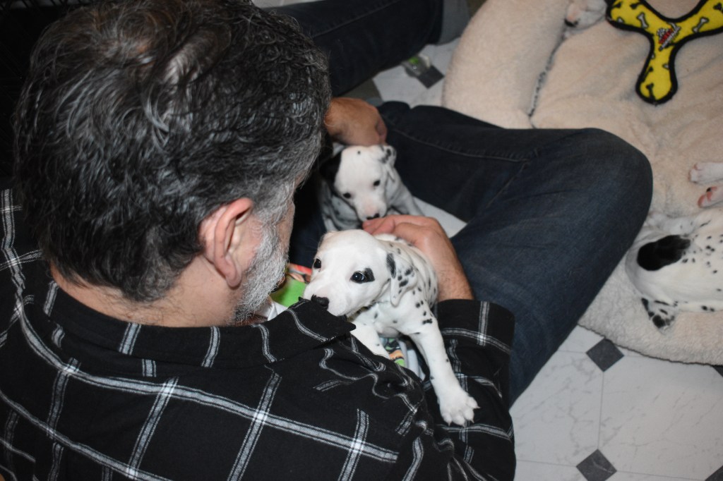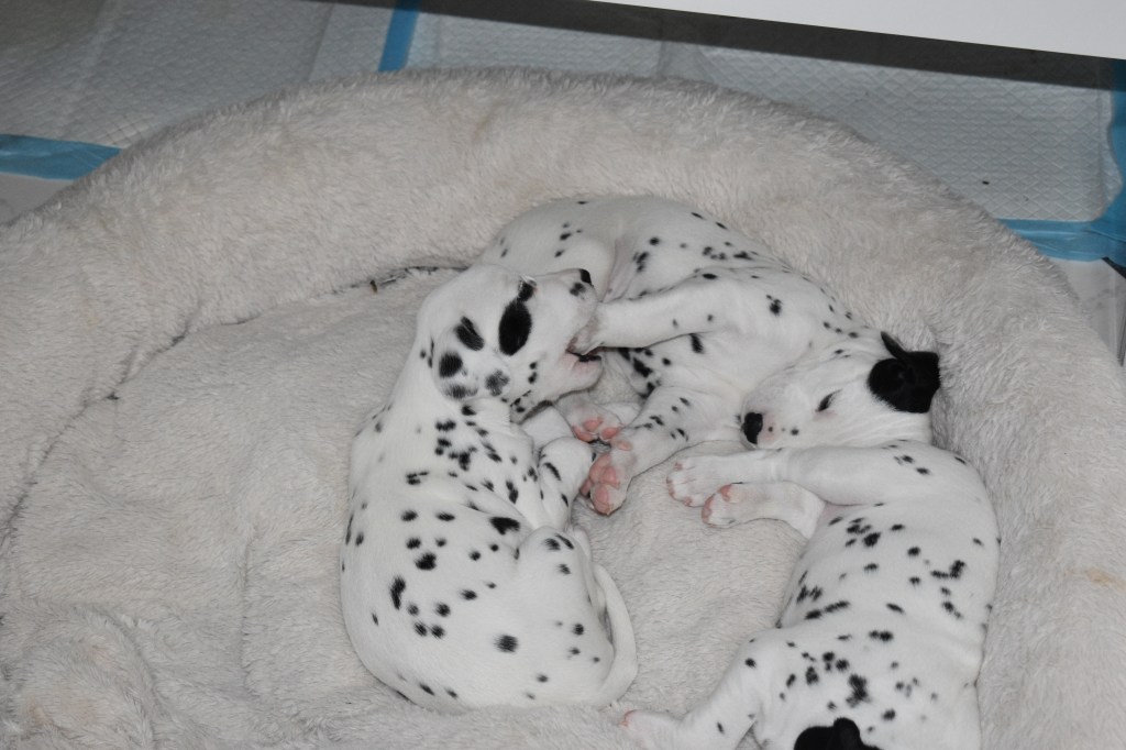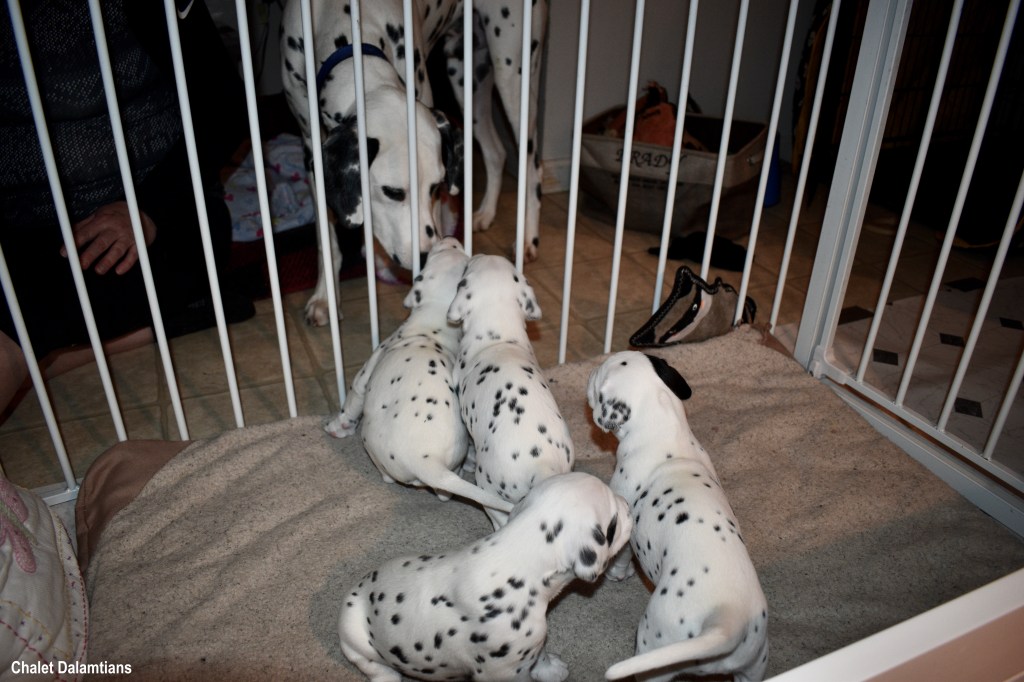Although I have never met Justus in person, we have been chatting online since July. I realized that I wanted him to be this litter’s father when I saw just how handsome he was. A couple of months later, I went to the Dr. to try for puppies one last time. Then my babies arrived in the middle of December. And three + weeks later, here we are!