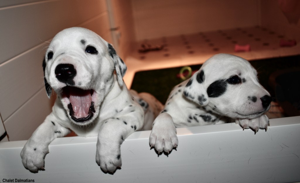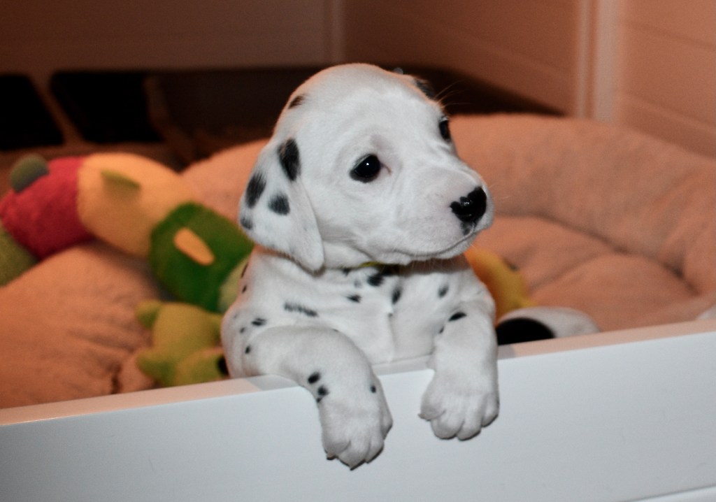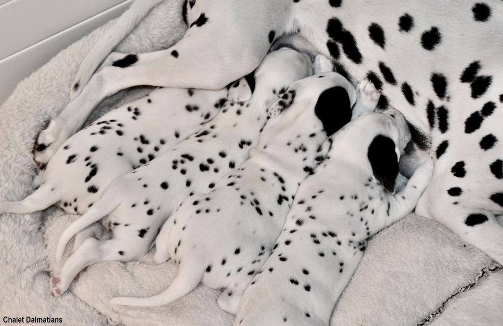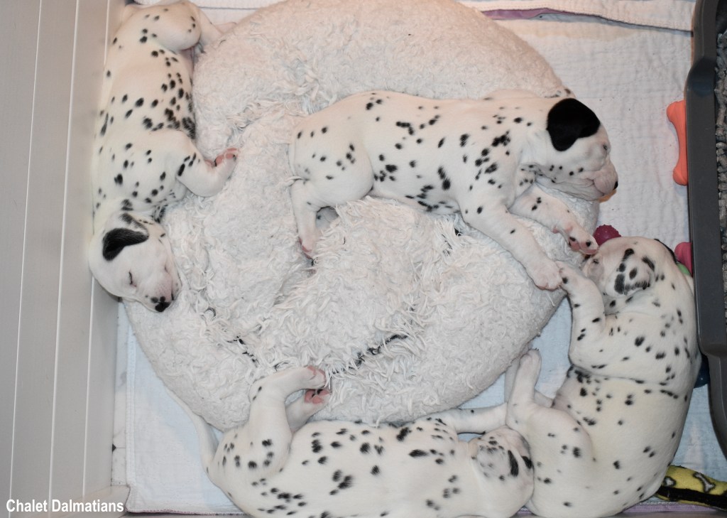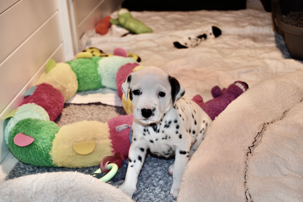 Although I have never met Justus in person, we have been chatting online since July. I realized that I wanted him to be this litter’s father when I saw just how handsome he was. A couple of months later, I went to the Dr. to try for puppies one last time. Then my babies arrived in the middle of December. And three + weeks later, here we are!