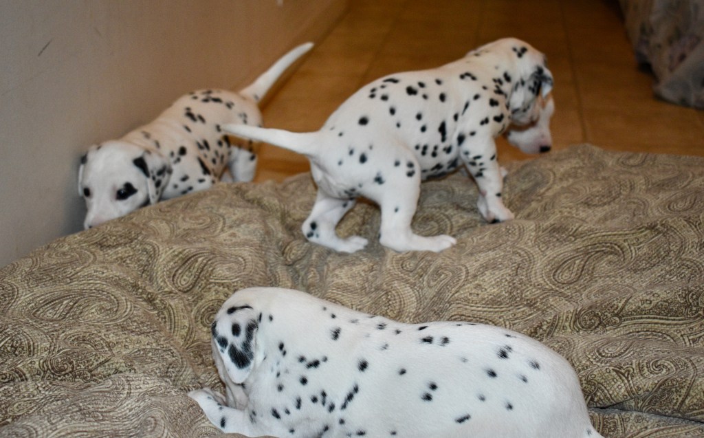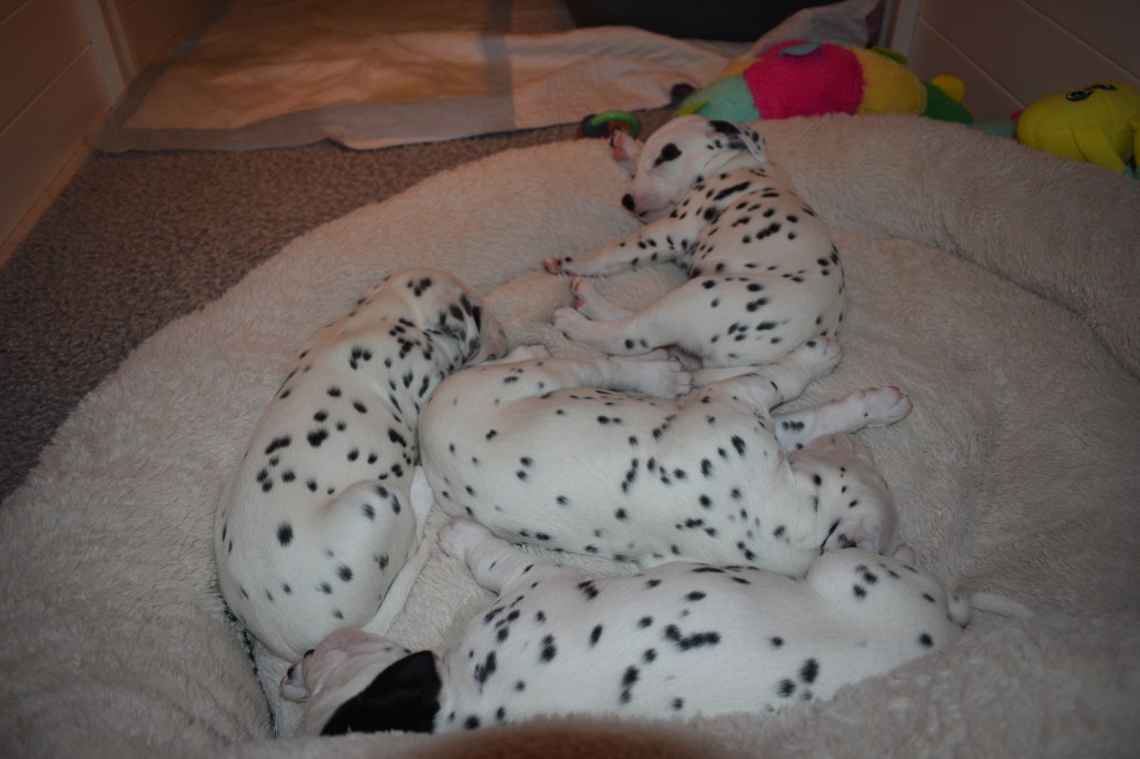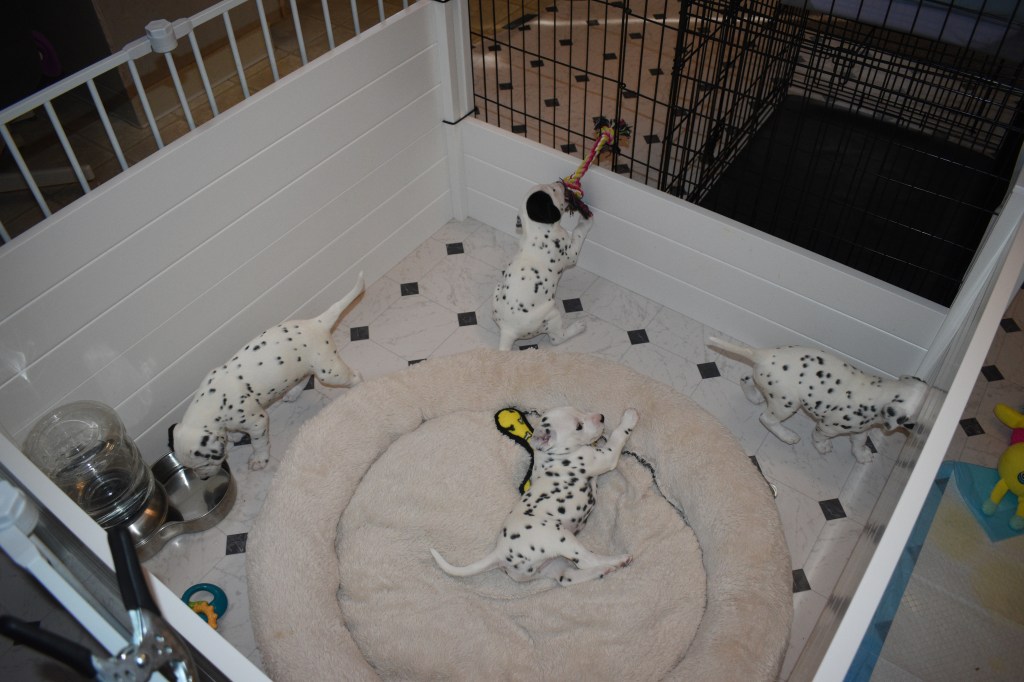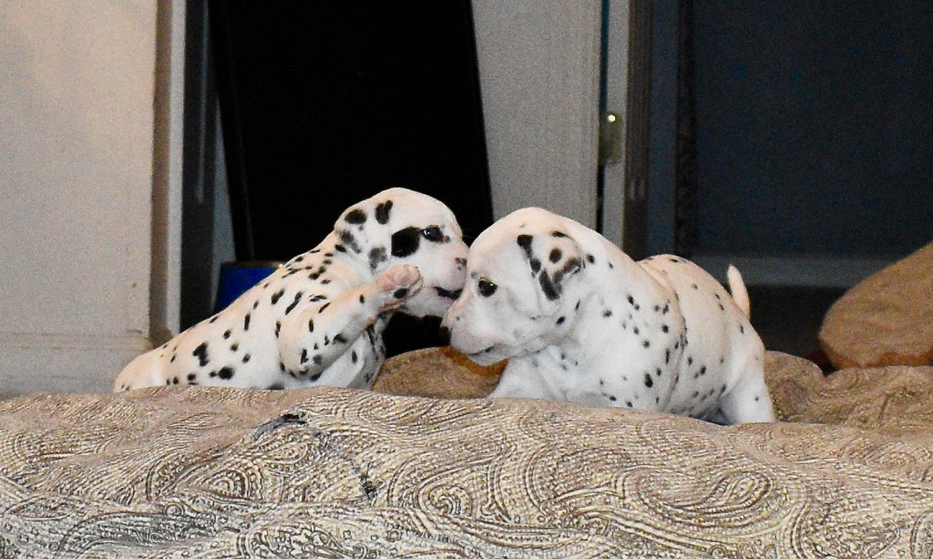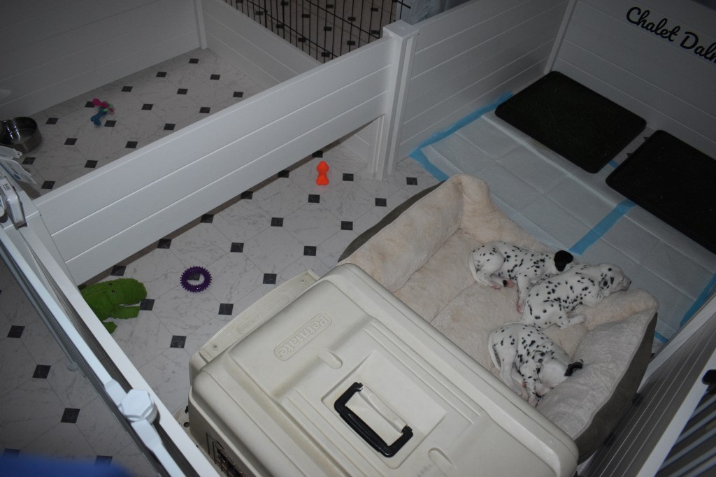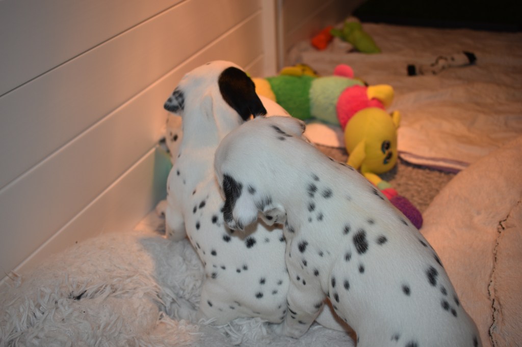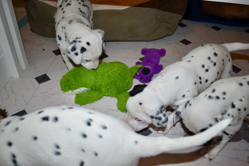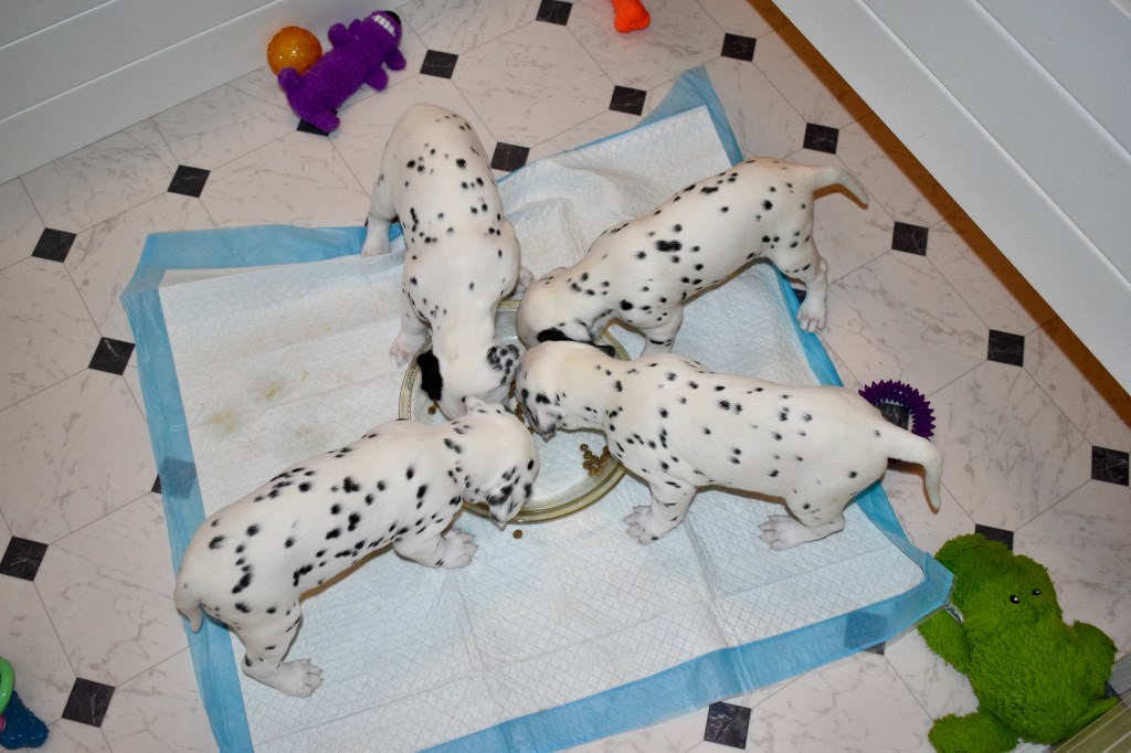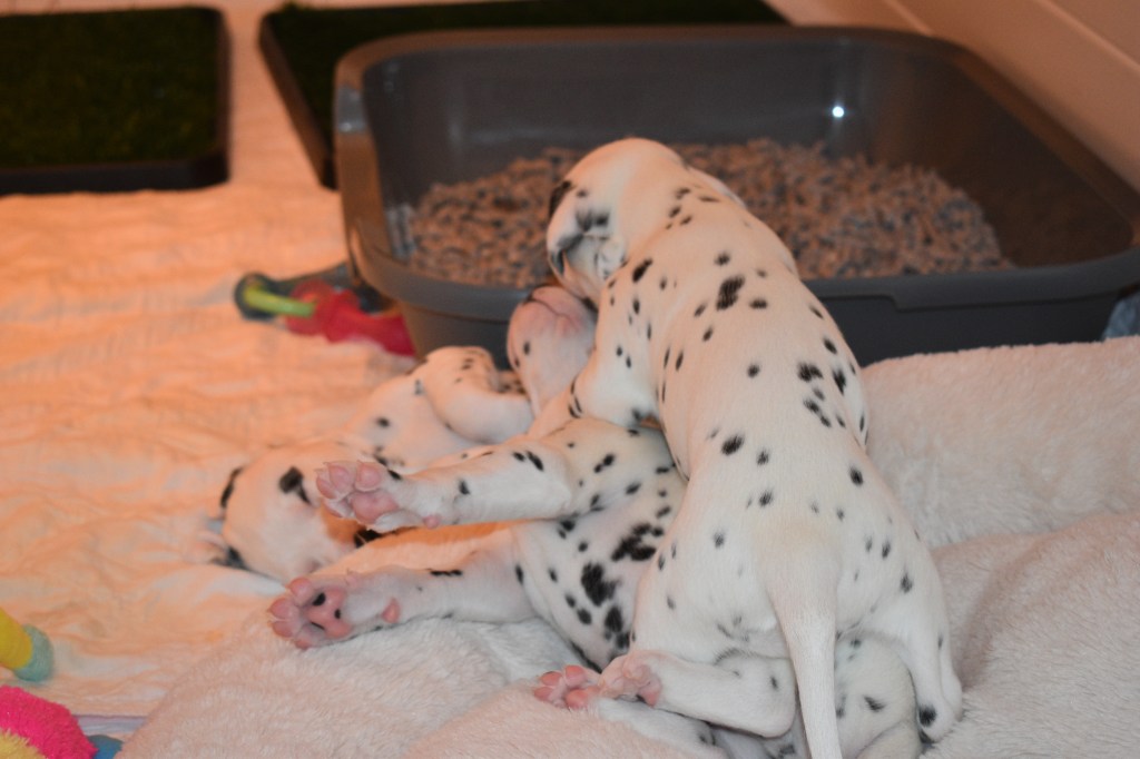 Since this was a major change to our world, we didn’t do anything new today. We did play a lot and even ate 2 full meals of puppy food. Other than the puppy food, mom fed us too. She said that we have to wean slowly because she will continue to produce however much milk is needed and it is best to transfer slowly.