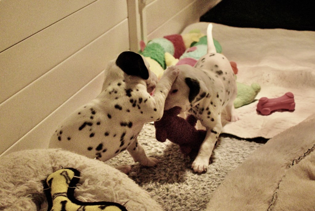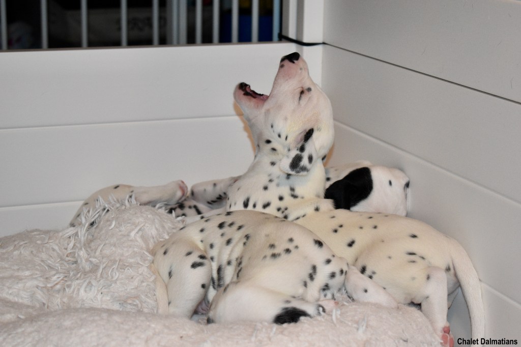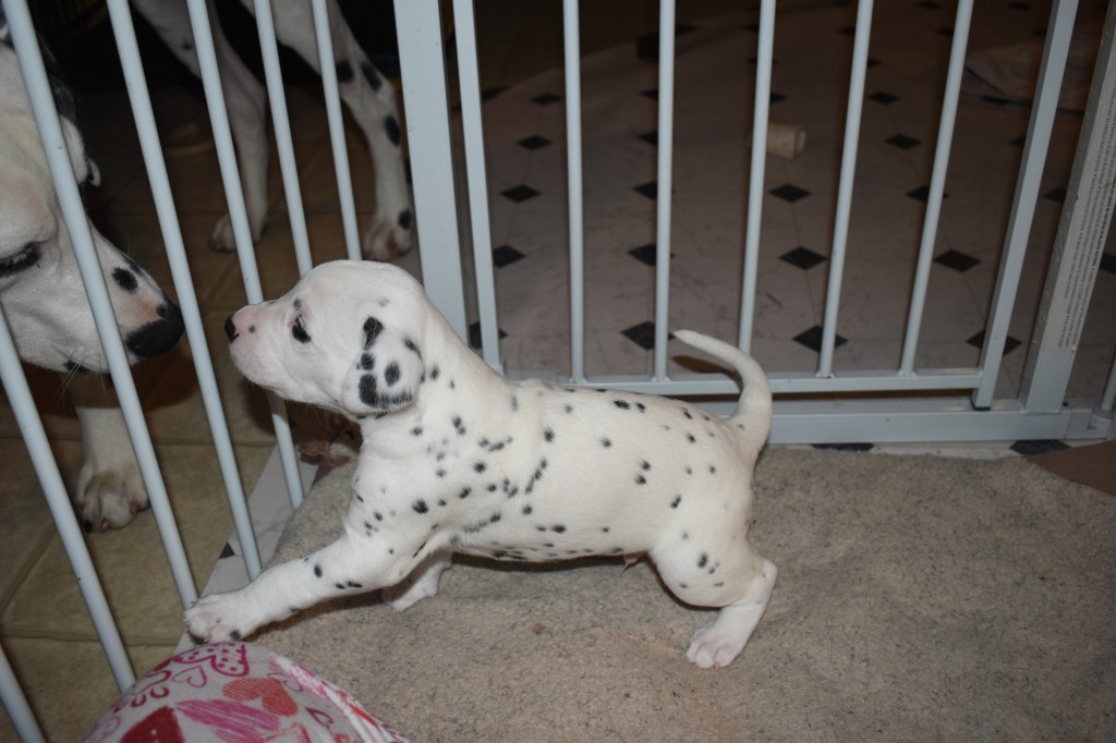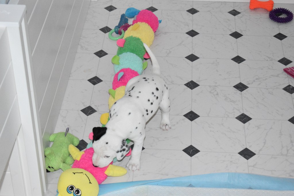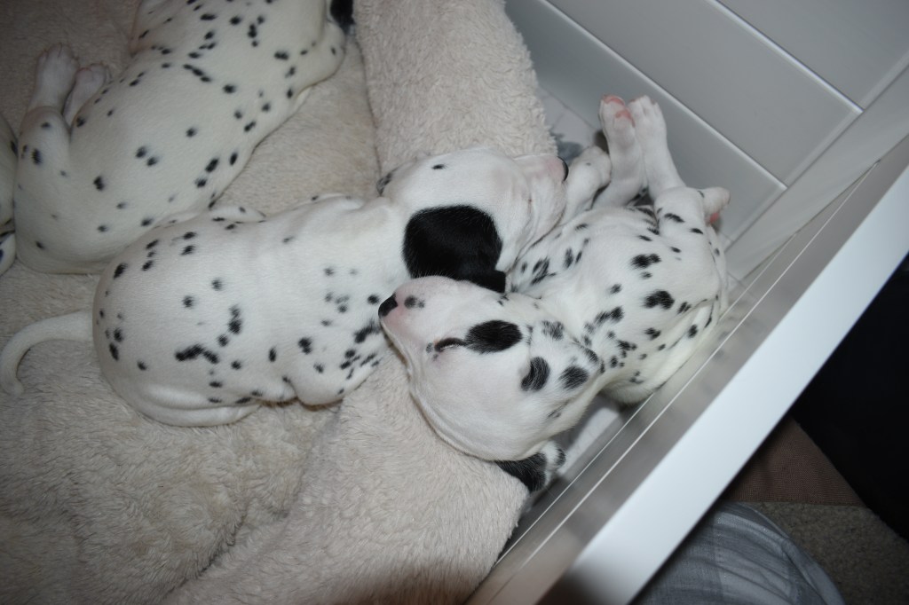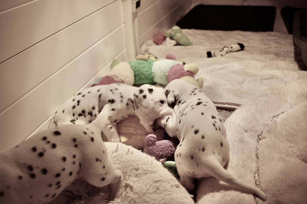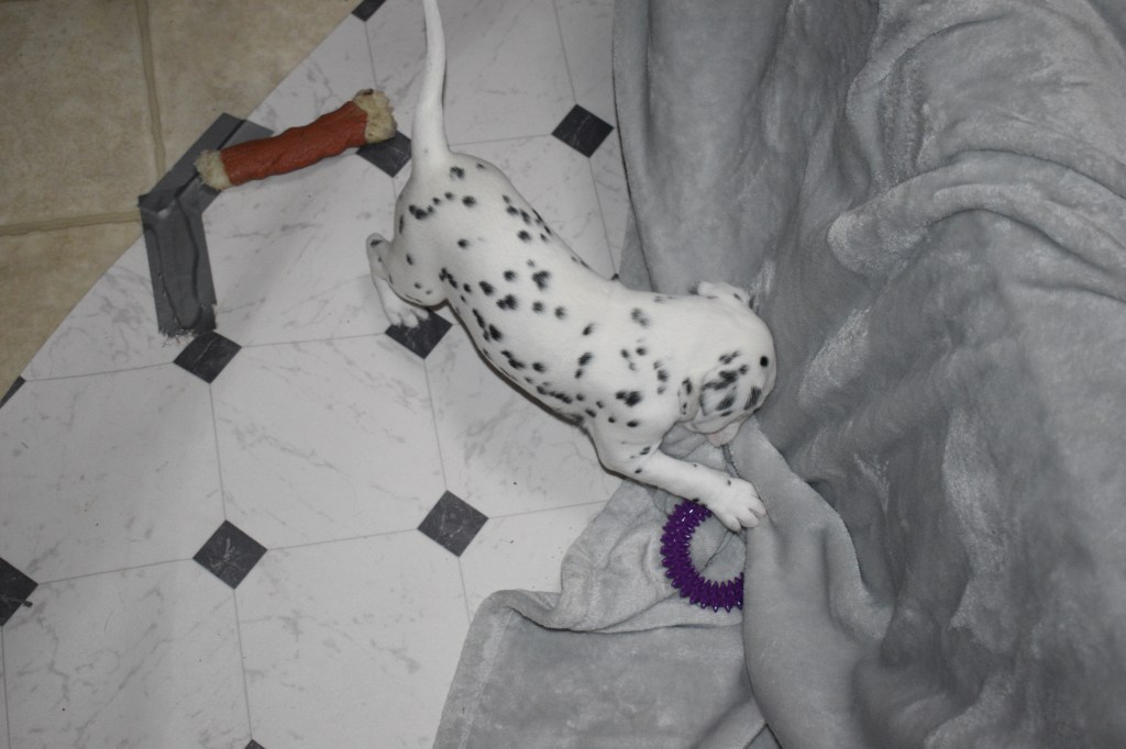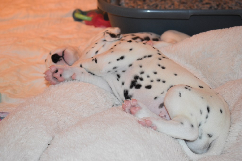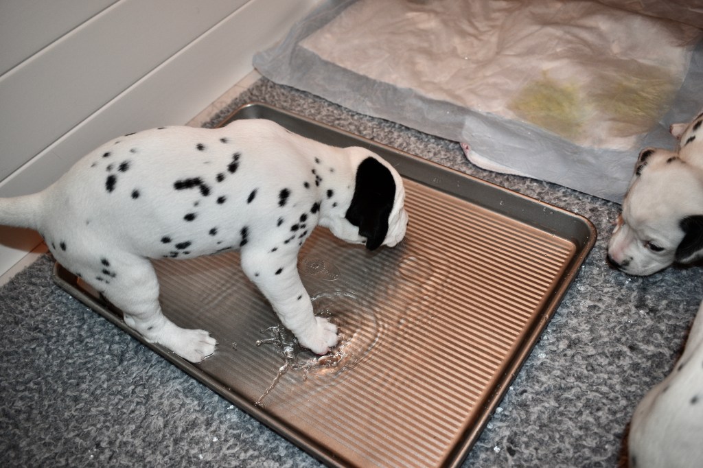 Since this was a major change to our world, we didn’t do anything new today. We did play a lot and even ate 2 full meals of puppy food. Other than the puppy food, mom fed us too. She said that we have to wean slowly because she will continue to produce however much milk is needed and it is best to transfer slowly.