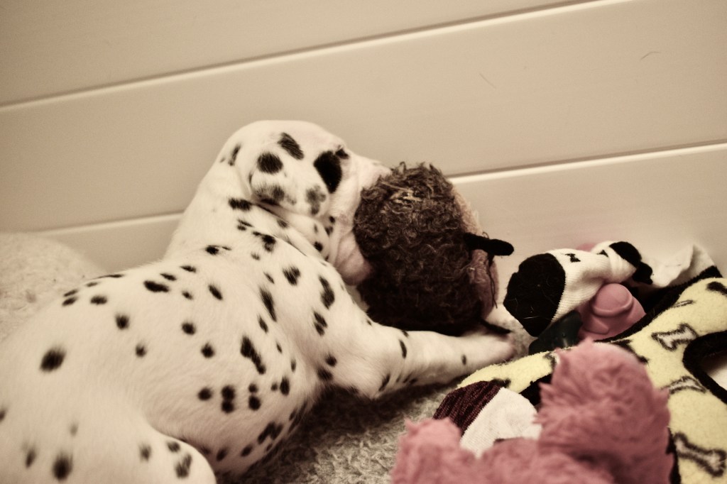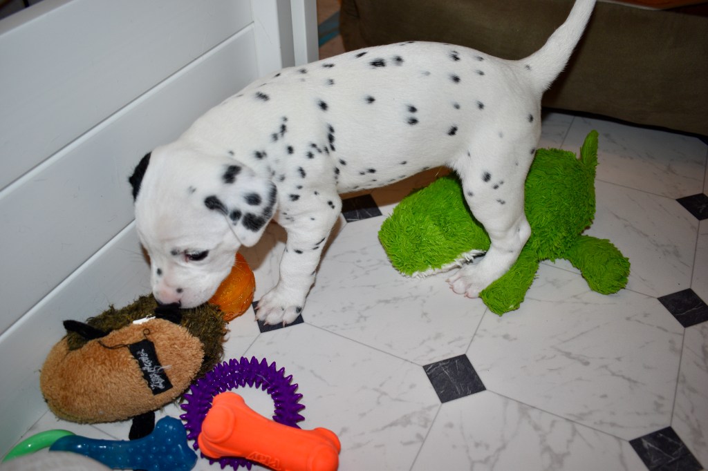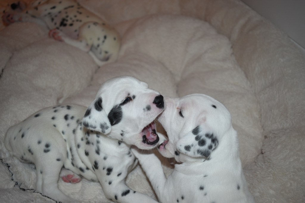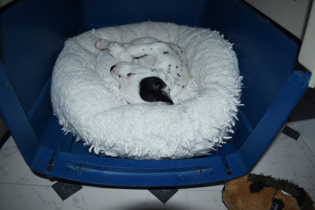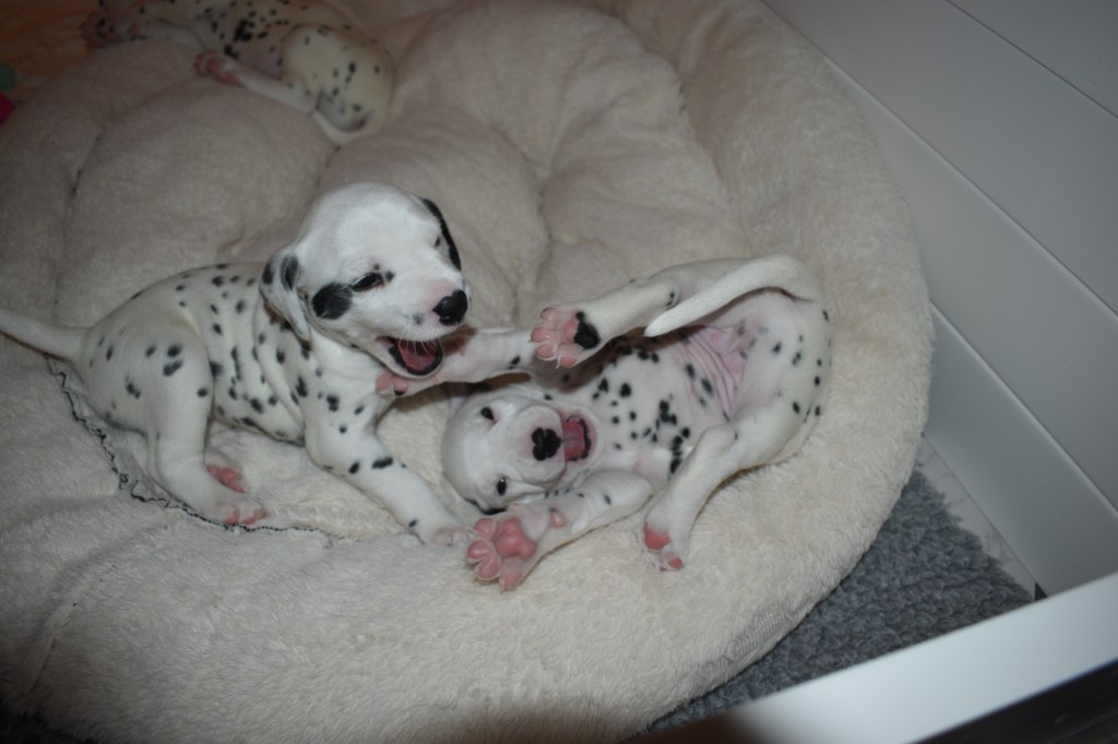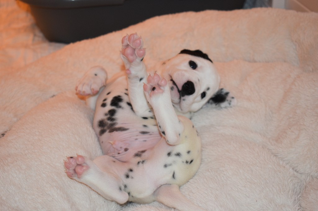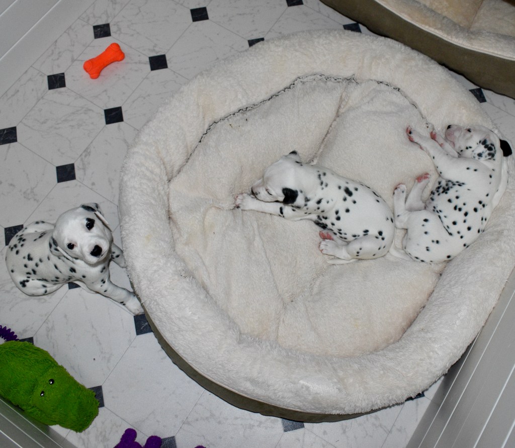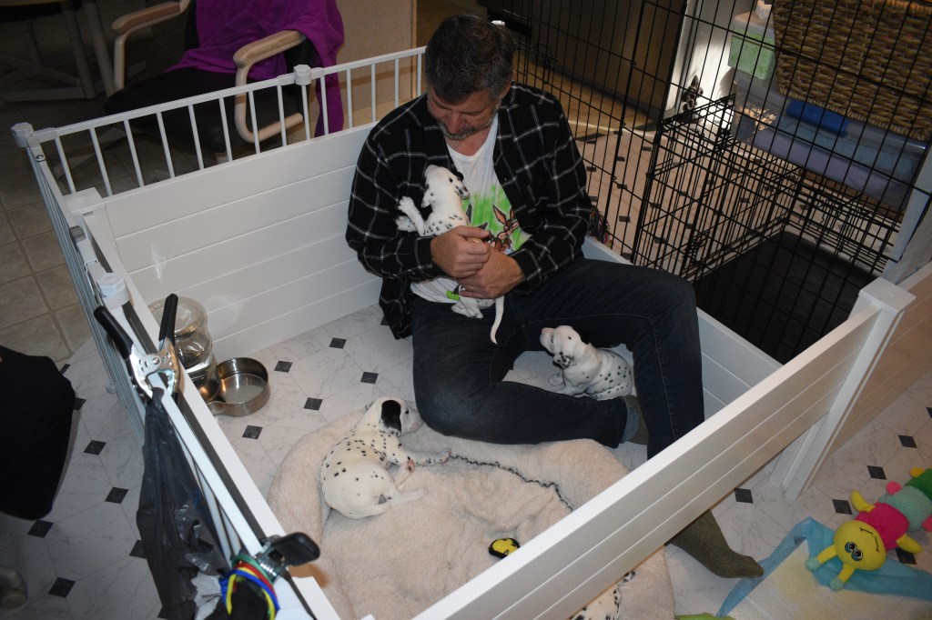 Since this was a major change to our world, we didn’t do anything new today. We did play a lot and even ate 2 full meals of puppy food. Other than the puppy food, mom fed us too. She said that we have to wean slowly because she will continue to produce however much milk is needed and it is best to transfer slowly.