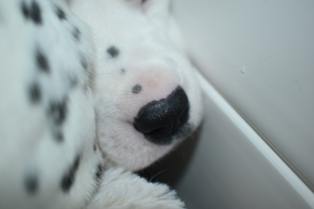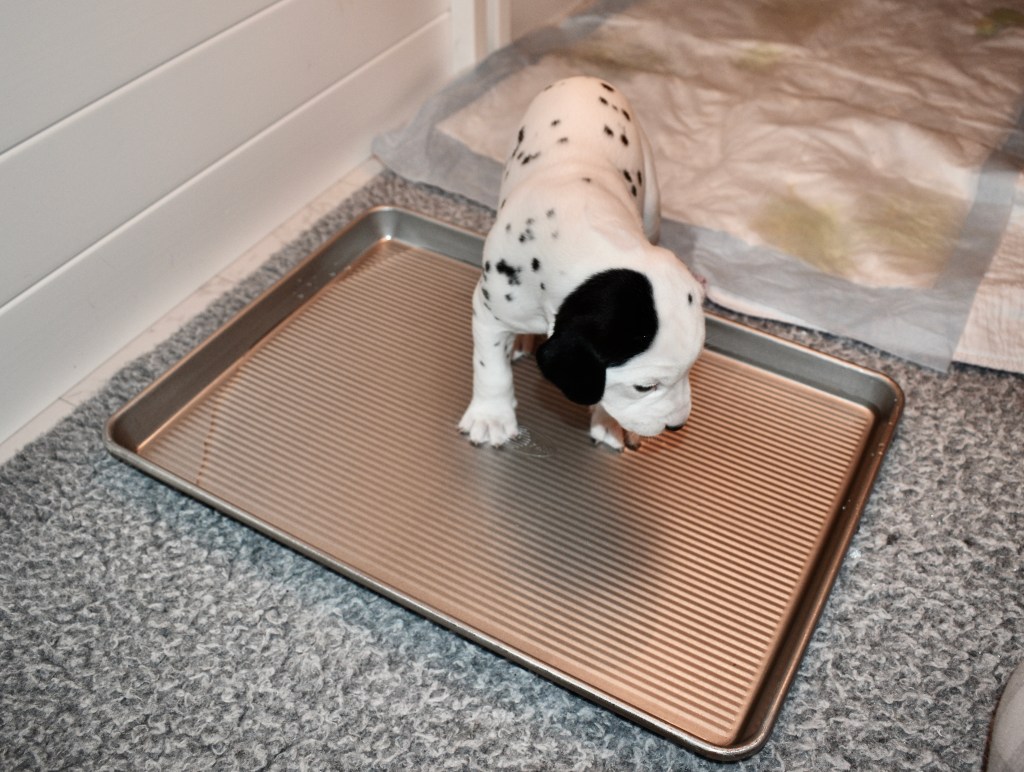 So as you have all heard, we literally got our feet wet today. The humans had this tray thing sitting right in our walking path to the potty, so there was only a small section of carpet for us to get around it. We took it in stride nevertheless. I even almost enjoyed it.