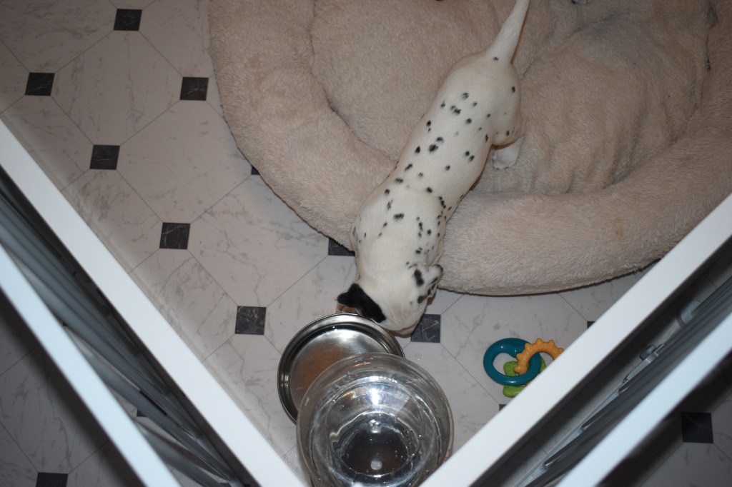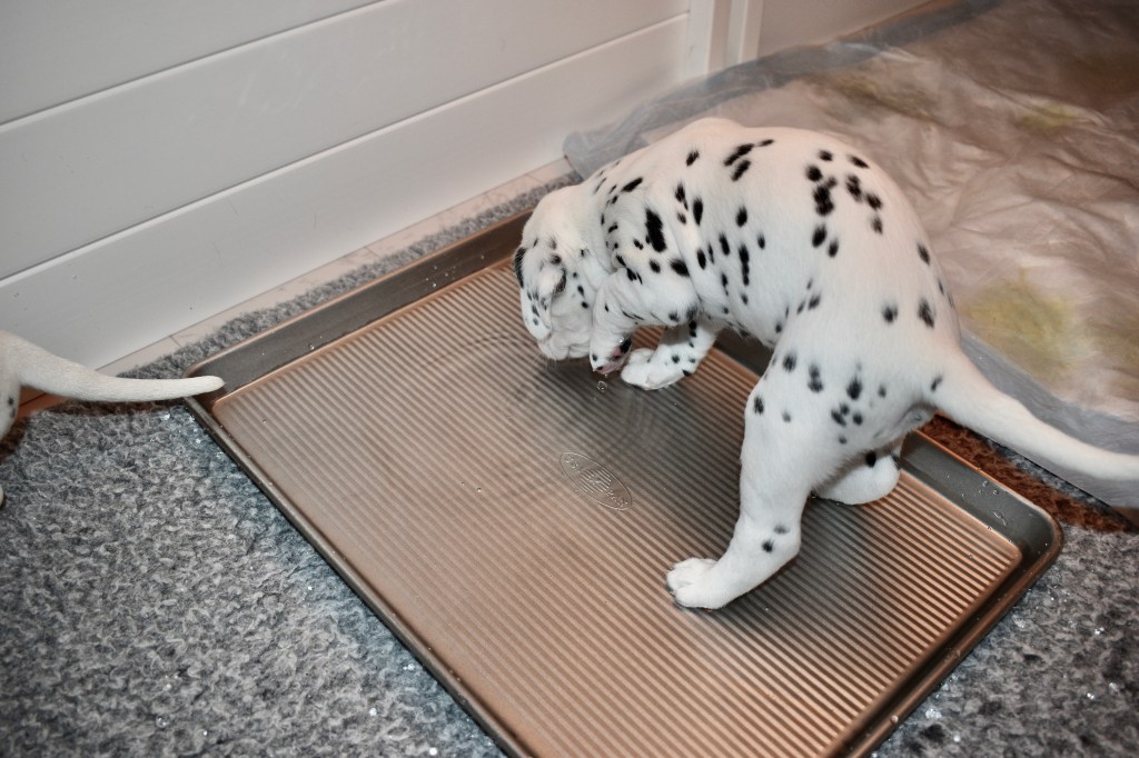 Some of us also found the water bowl and actually took quick drink instead of just looking at the water and touching our noses to it. Jill went first, but I wasn’t too far behind!
