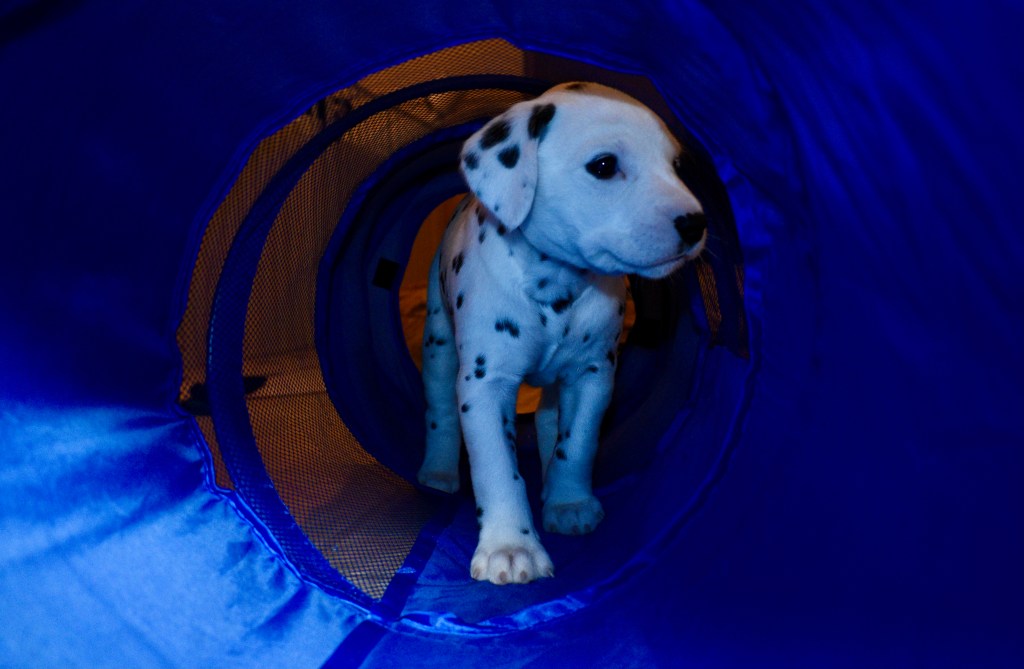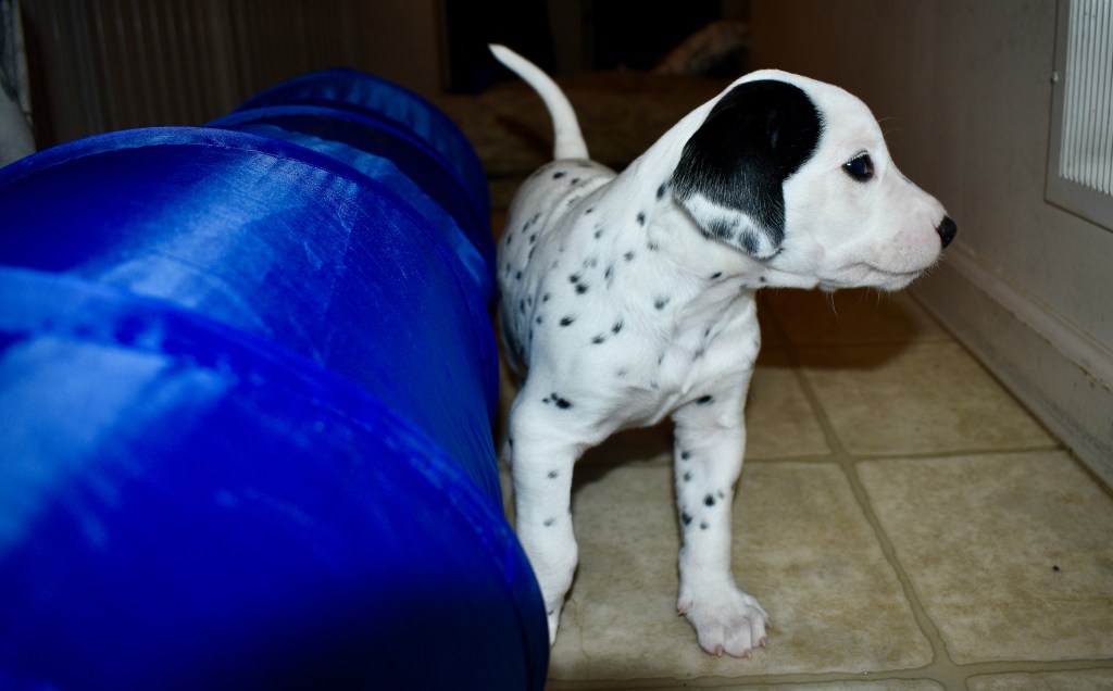 Today was your first elongated field trip…all together! You all did great and took it in stride. We had a few new additions today including a tunnel, being out of your box for more than 30 seconds & Grammy Chris! Chris bred Kimber’s mom Hope, who is now owned by LaDonna King, and owns Kimber’s Grandma Bridgette!