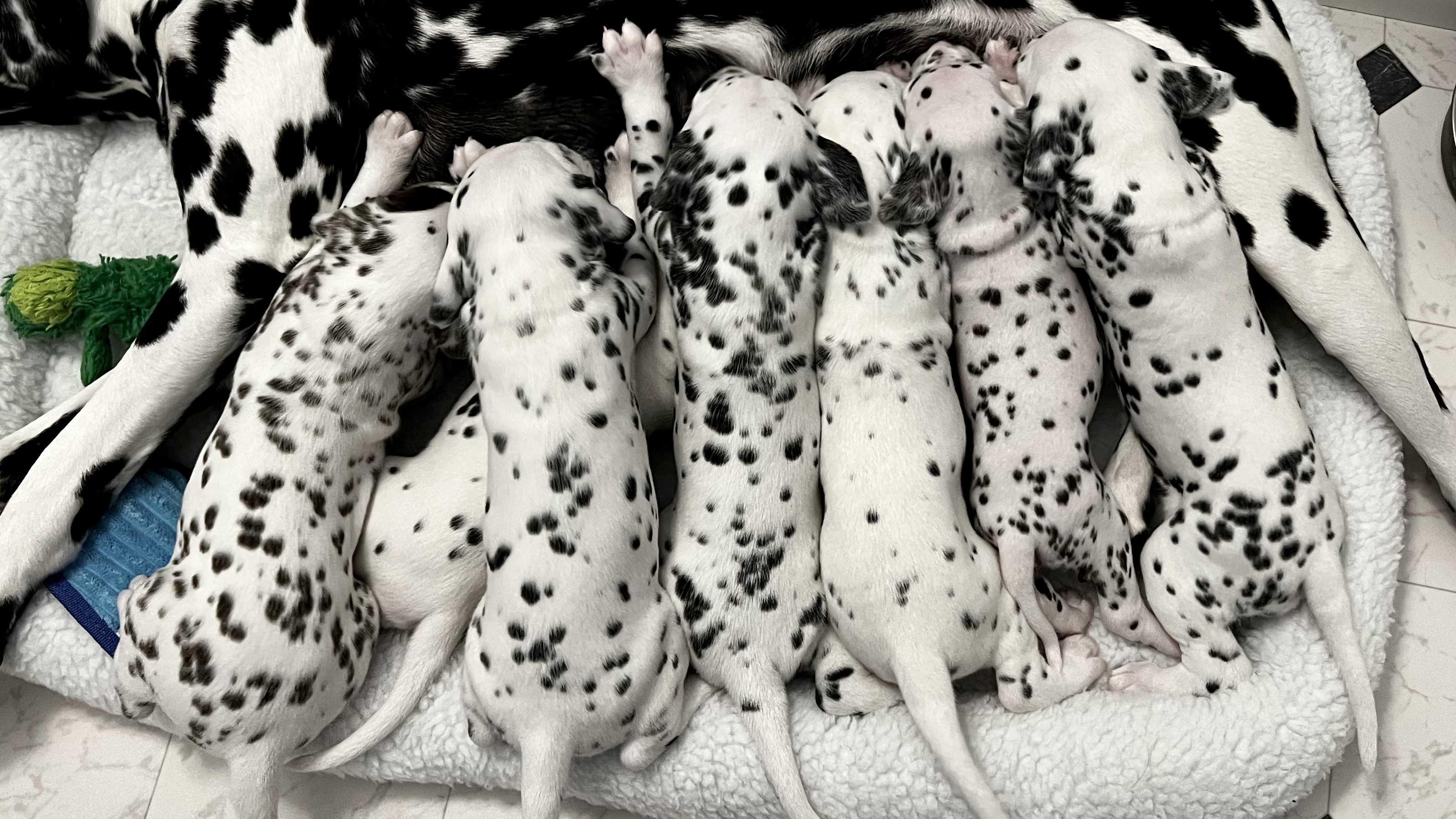 The puppies had their first meal of kibble today. Usually this day is very messy, but they were on the clean side afterwards.