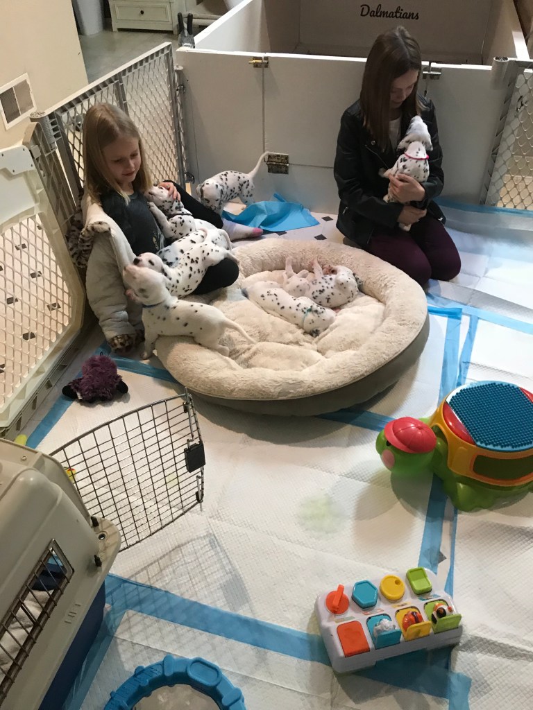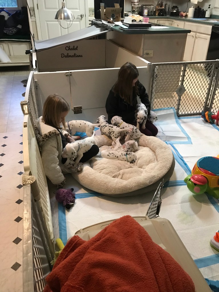 They got to meet our neighbor’s daughters today. Needless to say the puppies thought that they were pretty great! Early socialization means everything in the long run!