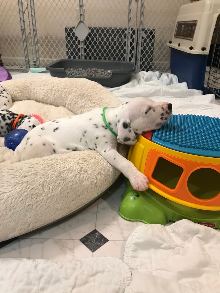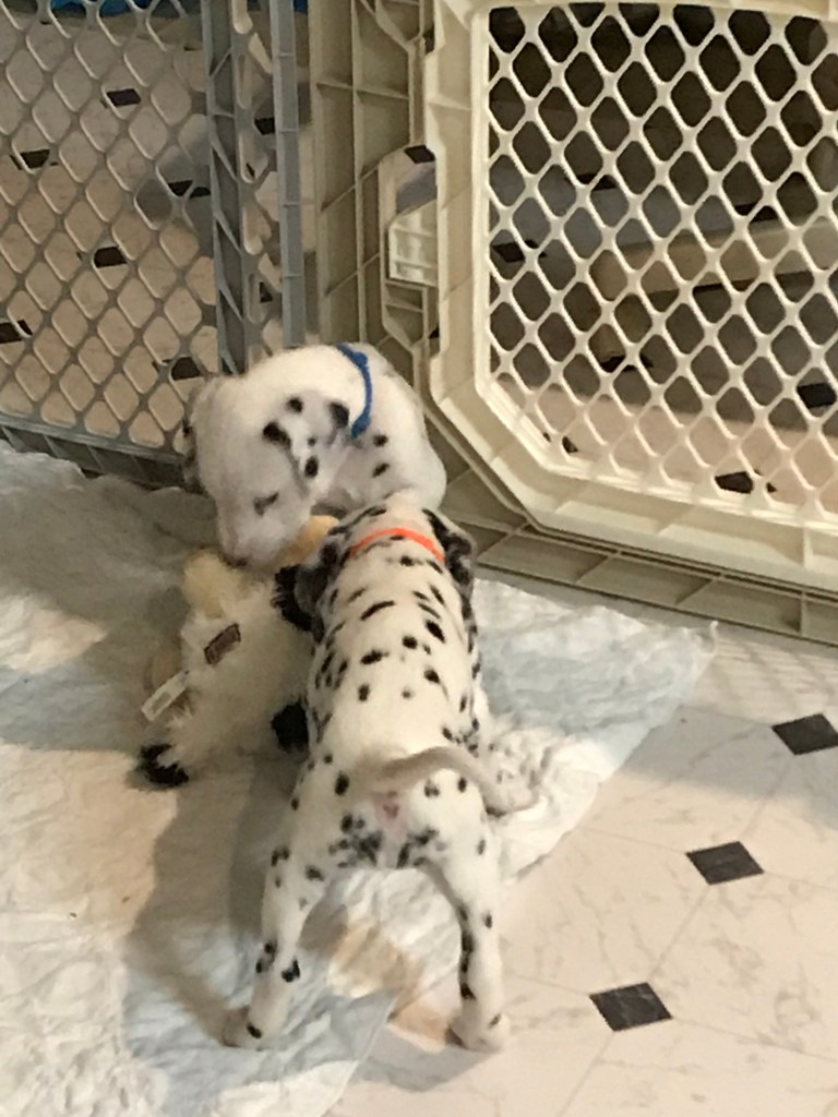 We continued with the resource guarding tactics today and again, I didn’t see a result that I didn’t like. We worked with their sleeping places today. Practicing resource guarding can shape a puppy to be the exact type of dog you want to have in your family in the long run.