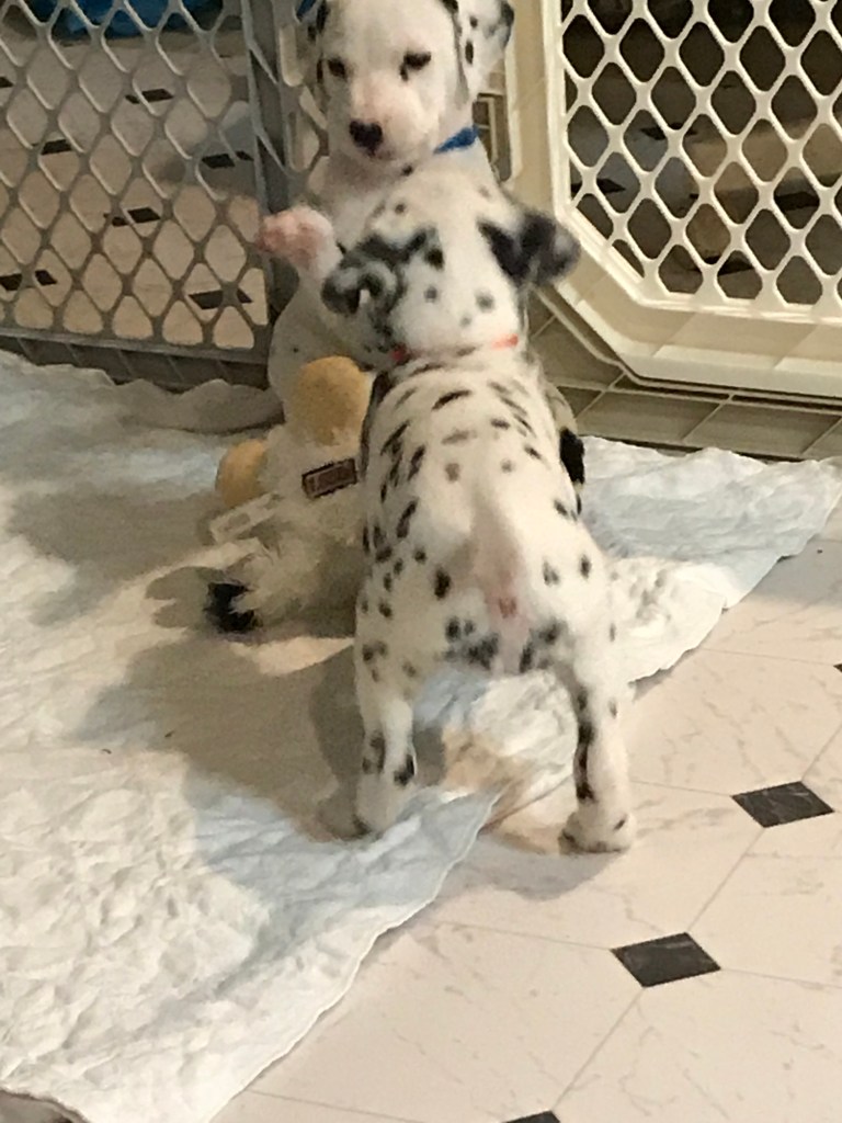 I did put the ball pit out for the puppies today, but I mistakenly did it when they were ready for a nap so I didn’t get a good video. Earlier in the day however, I exchanged some of the toys for new ones. This slide was a huge change and I wondered if they would like it or not. Well needless to say from this video, it was a hit!