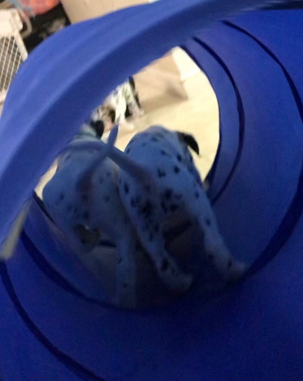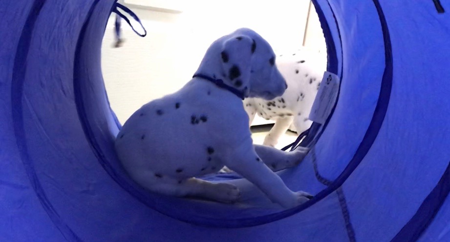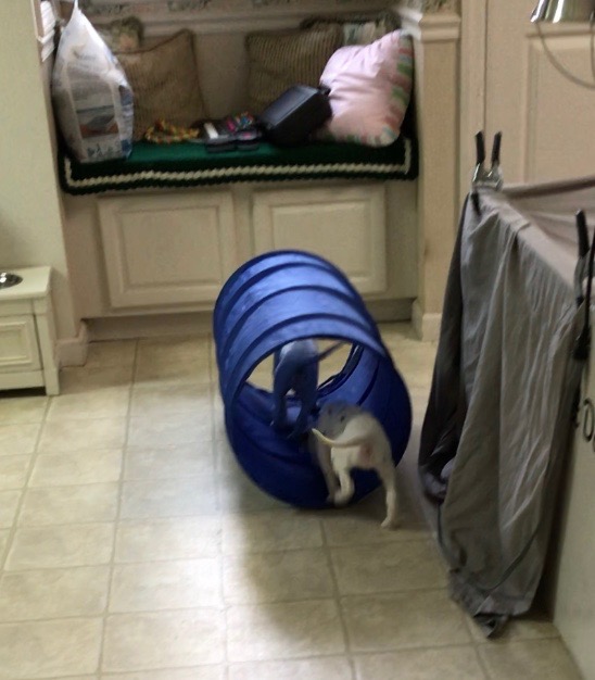 The puppies played with the tunnel today. I think that they really seemed to like it. They ran towards it like they knew exactly what it was for.