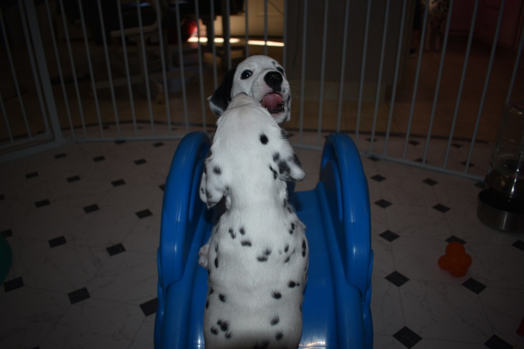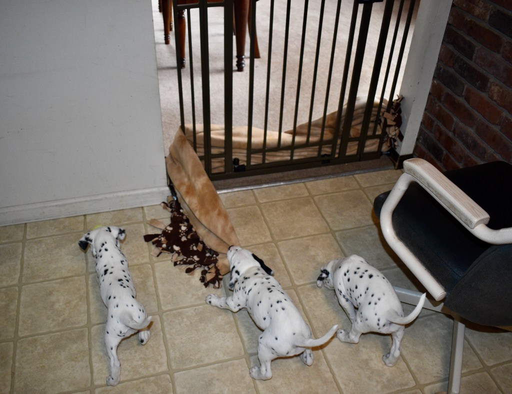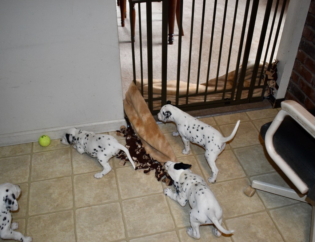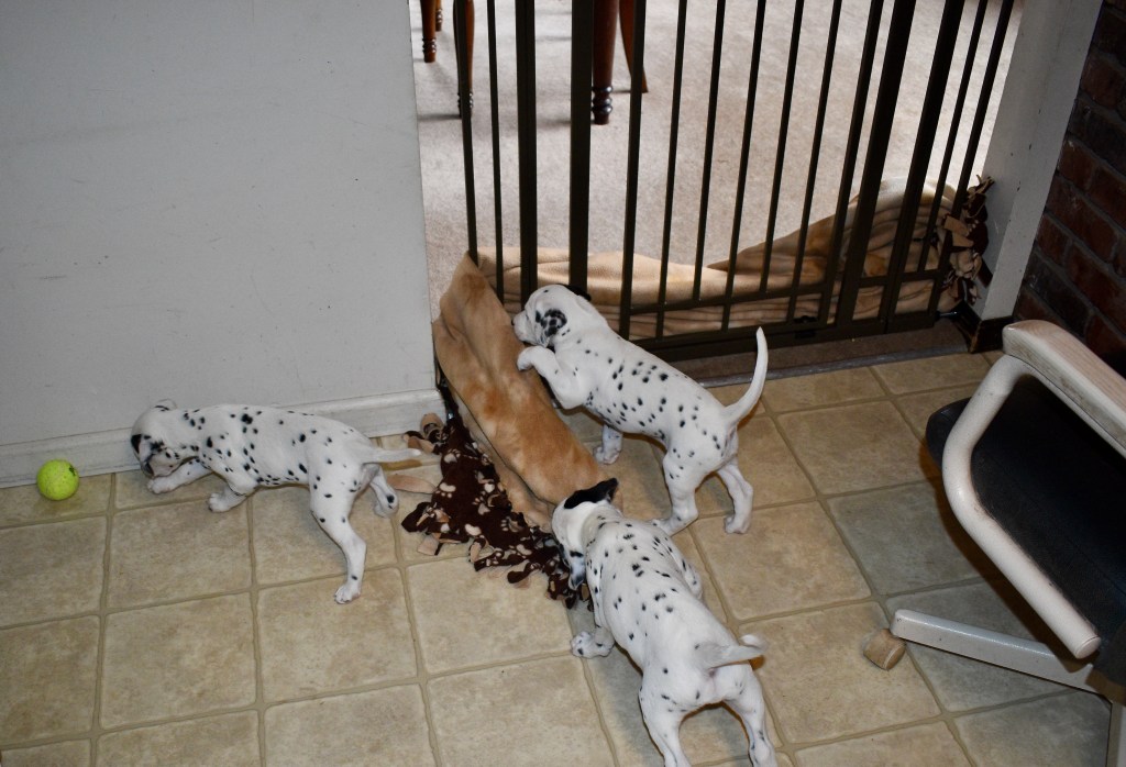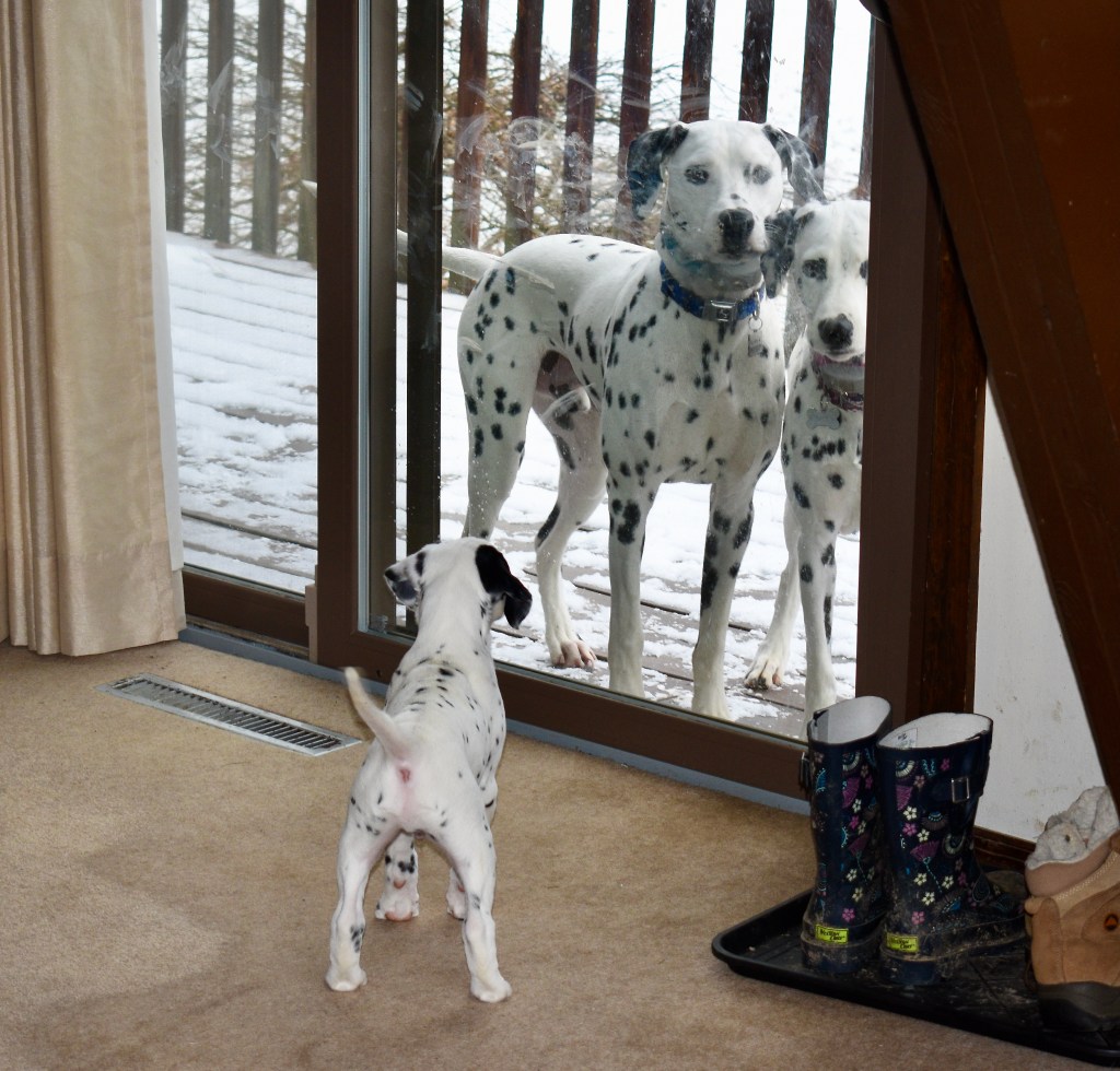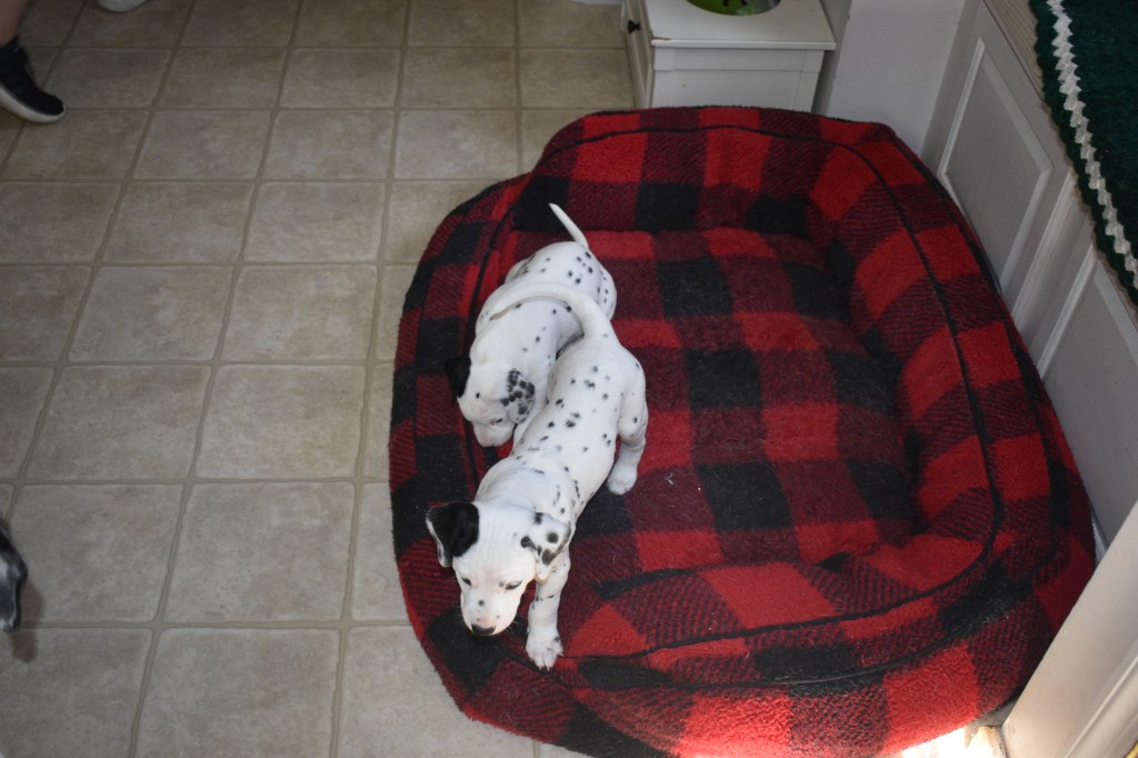 Two of our very good friends from the Greater Pittsburgh Dalmatian Club are coming today to check you guys out in person! We have a pretty good idea as far as your structure goes, but Barb Allison who is a longtime breeder of 40+ years of experience will make sure that we are all on the same page!