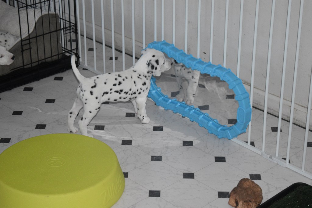 Our other new addition was this mirror. The puppies seem to enjoy it a lot and sometimes even play with themselves in it! Here is Jill taking a look at herself!