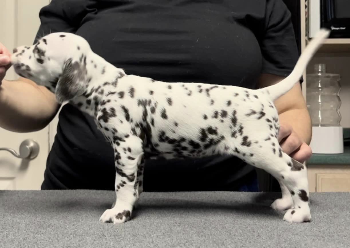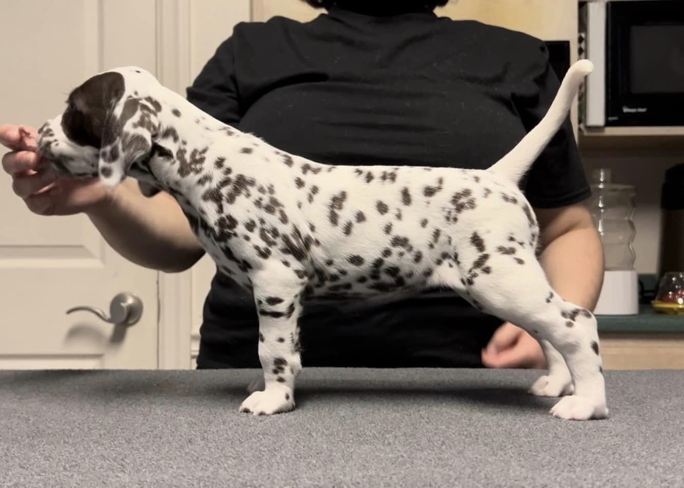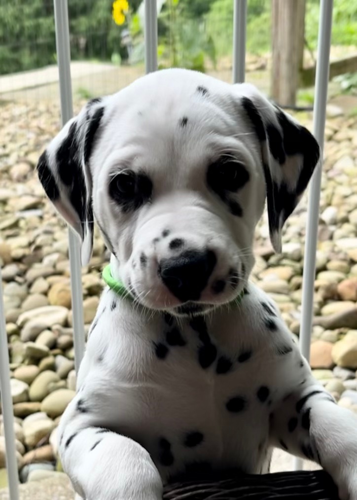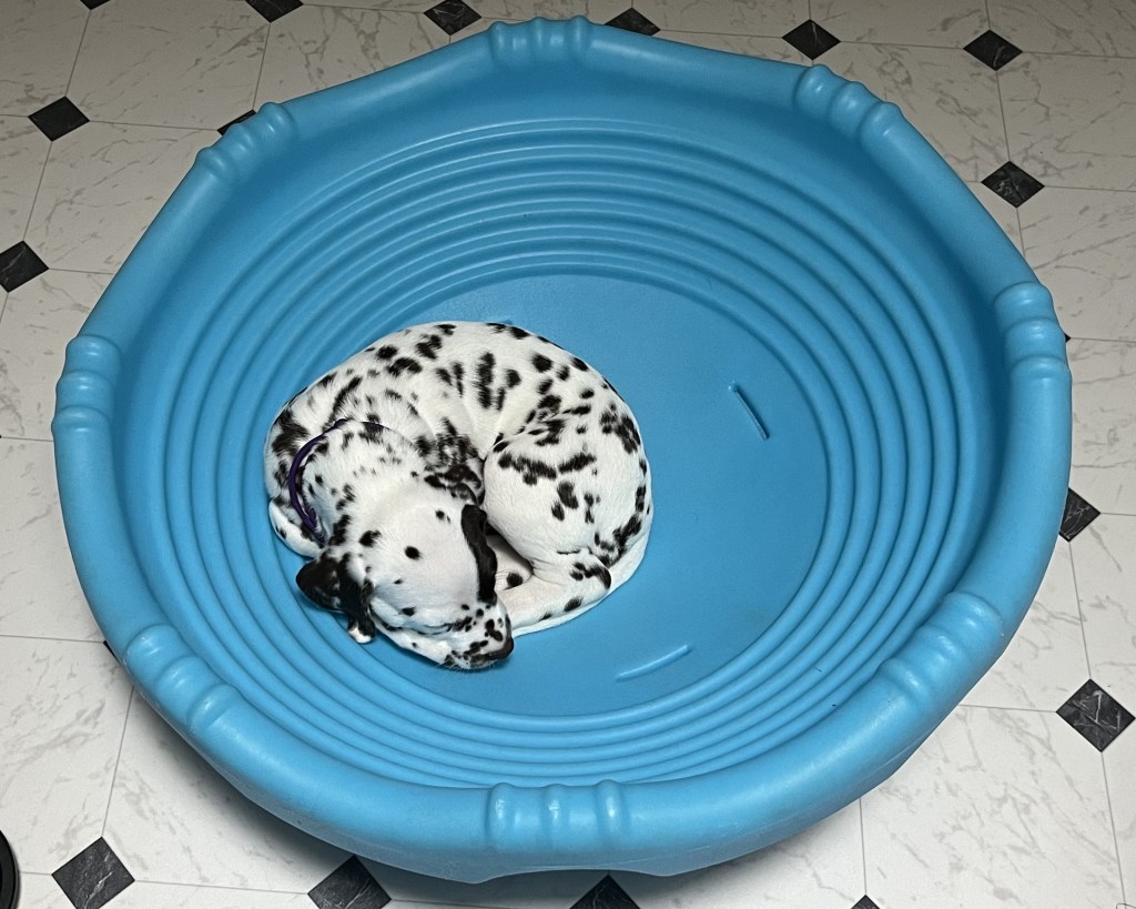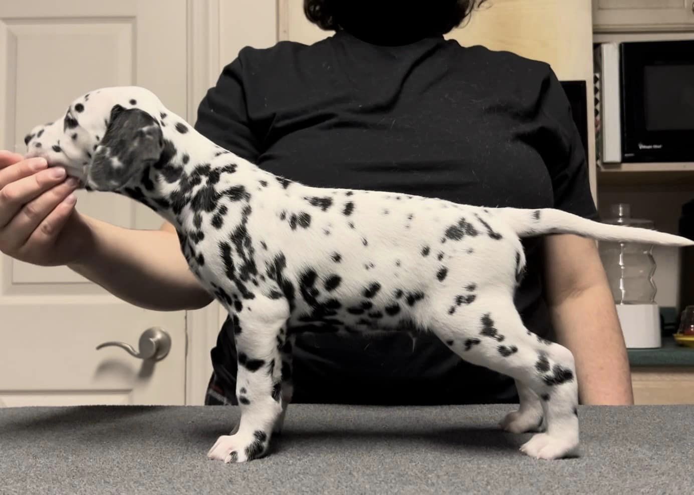 They also had a very special visitor named Mary. Her grandmother and mother were with her too for her play date with the puppies. They are good friends of ours from our local Dalmatian club. They have had Dalmatians for many many years. Mary’s favorite puppy was Charlie!