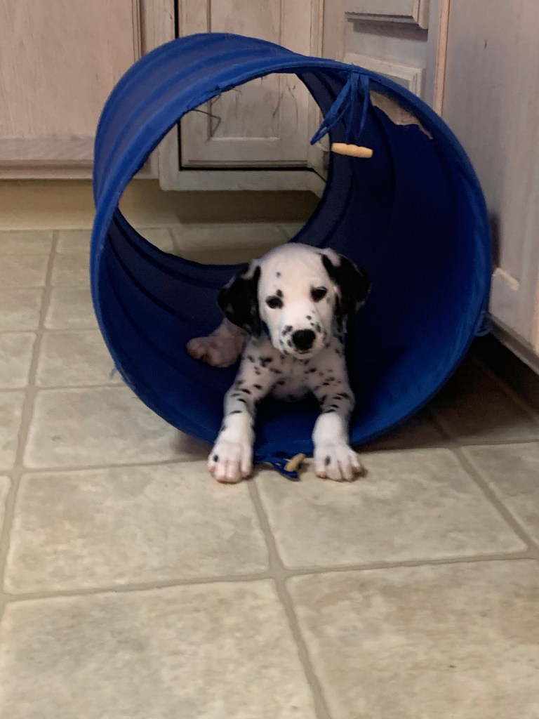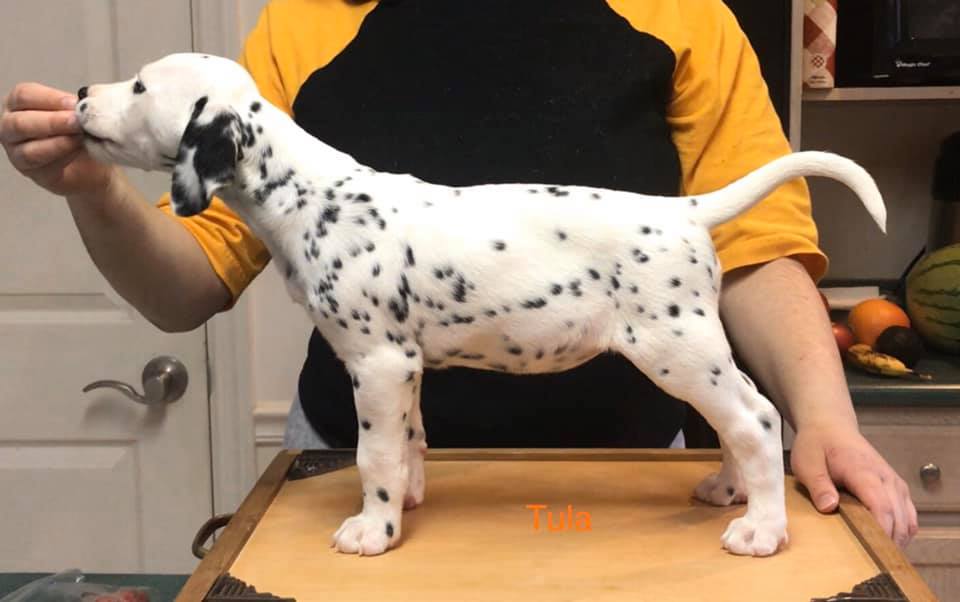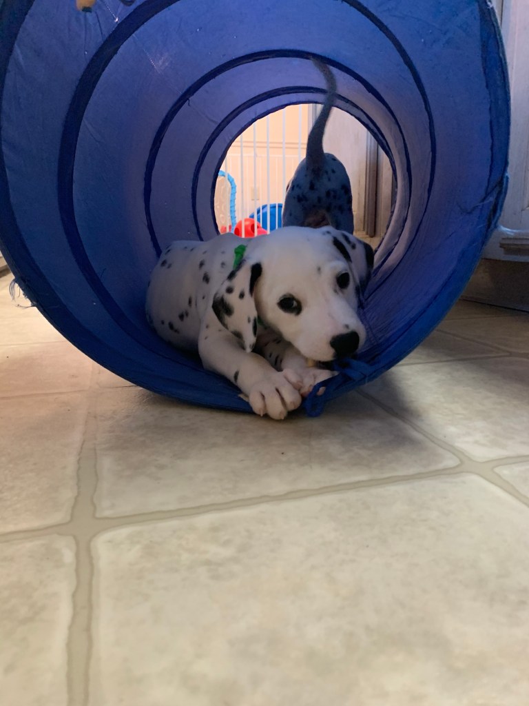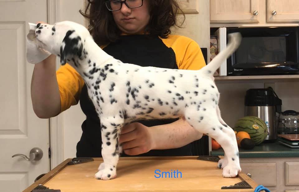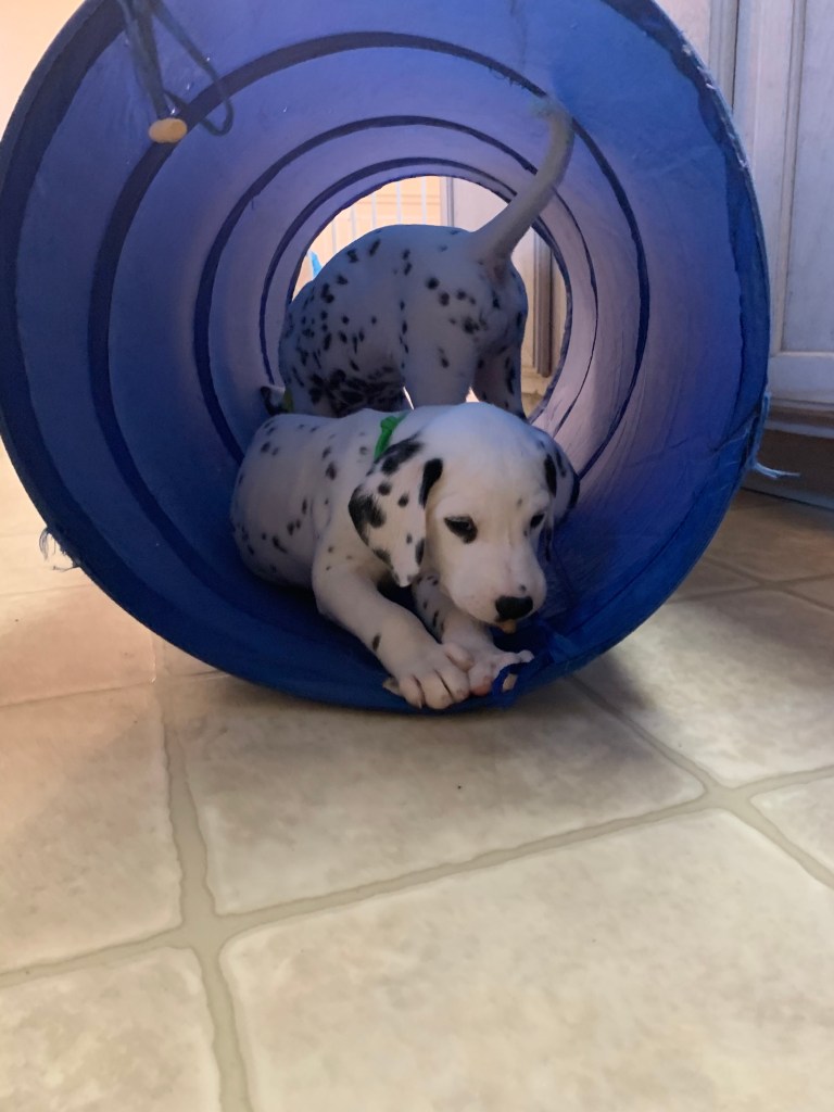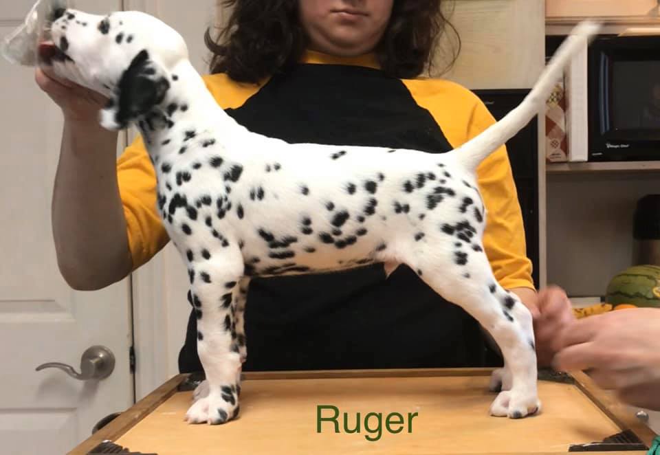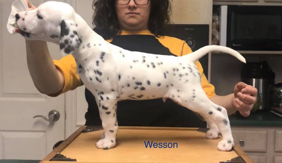 Long time friend and mentor, Barb Allison of Rim Rock Dalmatians, came to evaluate the puppies today. Some of you may know the story of how we got our first show dog, Brady, who was originally bought as a pet and then turned into a show dog because many of the Greater Pittsburgh Dalmatian Club members said that he needed to be shown. Cut to almost six years later, and here we are with 10 puppies! So anyways, when Barb was here, she confirmed what I was already thinking, which is that we have two pups that we would like to be shown. Taurus and Wesson are the two show prospects. Although there are some others that can be shown too, we are ok with them being pets as we believe that there really isn’t a need to have the same pedigree out there so many times.